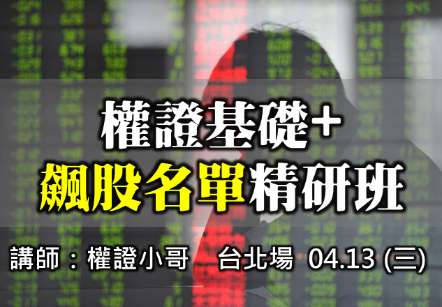 04月13日(三) |權證小哥| 權證基礎+飆股名單精研班 ► 點此報名(台北場)