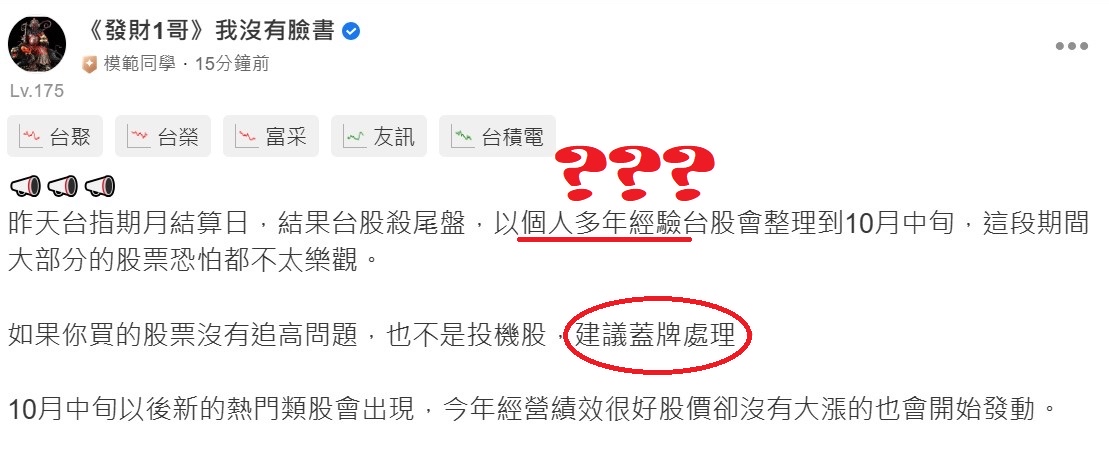 不是不報,時機未到 追蹤 Lv.19 2023年09月21日 10:24 鴻海 佳世達 緯創 復華台灣科技優息 廣達 展開 +5 黃牛一哥的個人經驗能信度,大概跟嫦娥中秋節會來跟他烤肉一樣 繼續閱讀 11 0P 1則留言 打賞 分享 留言 讚 取消 送出 查看 1 則留言... 留言...
