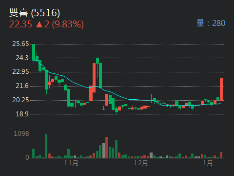 【營收快訊】雙喜(5516)公告12月營收