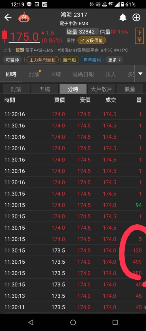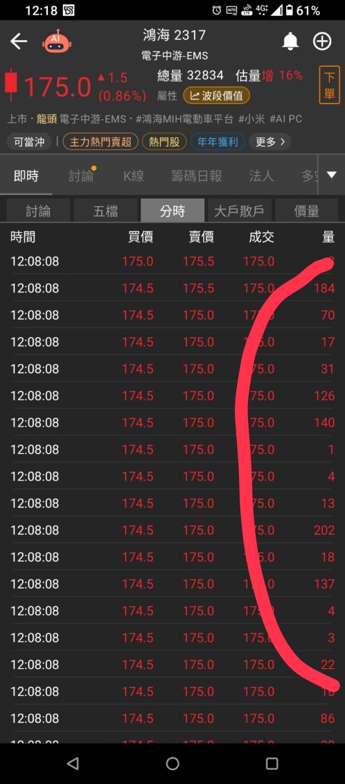 出貨盤的樣子:一開高就有人賣,短線難強攻