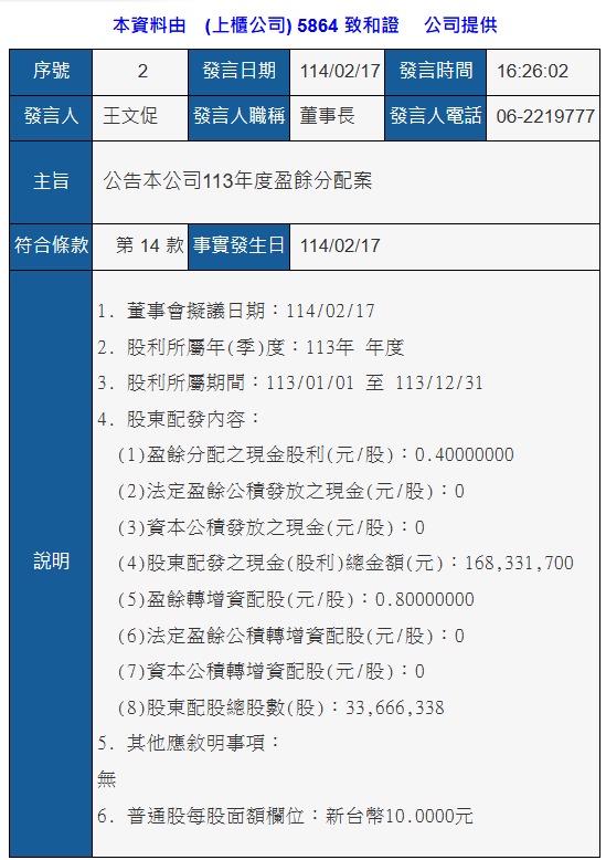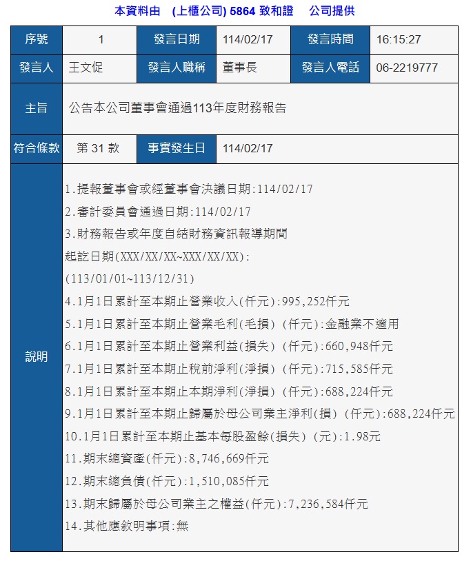 天籟美哥 追蹤 解答大師 Lv.48 2025年02月19日 01:38 致和證 展開 +1 5864致和證113年度財務報告、113年盈餘分配案 繼續閱讀 18 2P 2則留言 打賞 分享 留言 讚 取消 送出 查看 2 則留言... 留言...