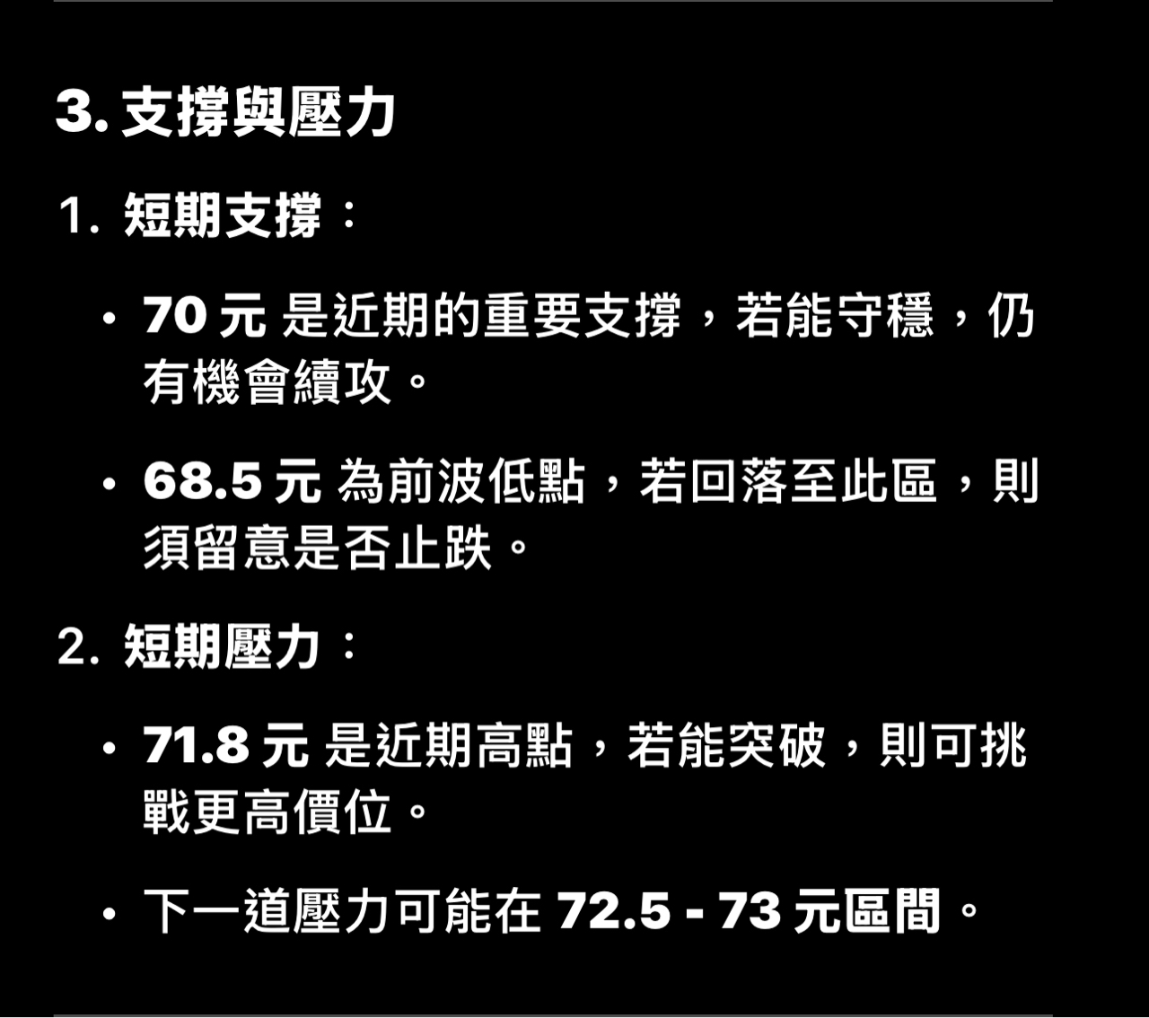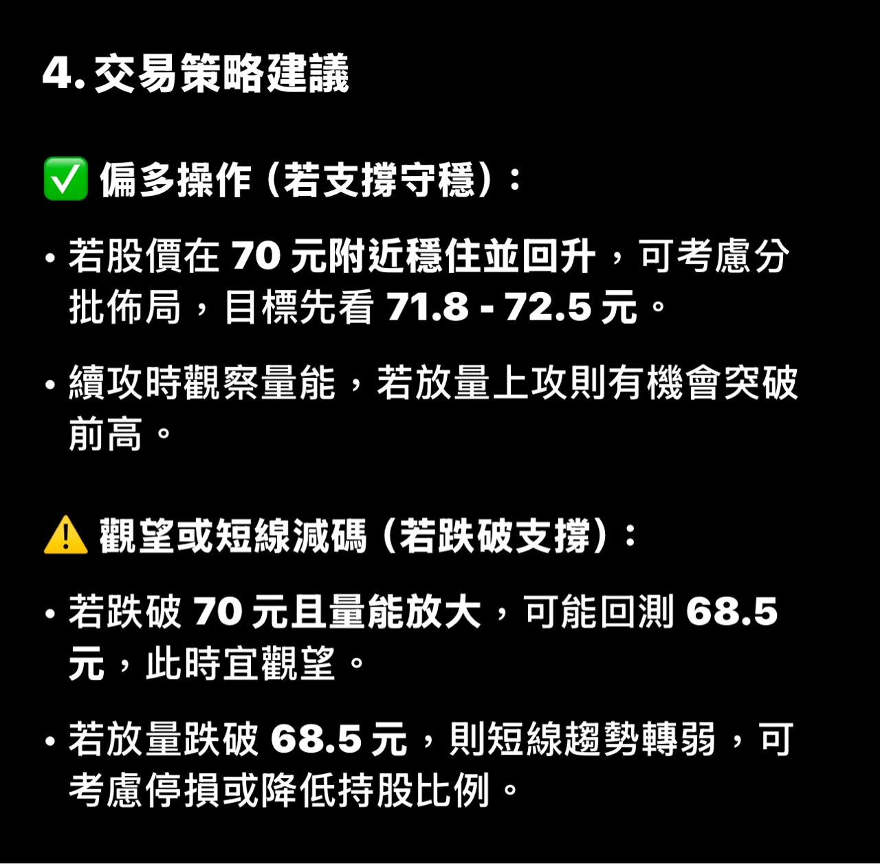 大盤從最基本的波浪位階已經到5,至於5能走多遠,且有沒有可能是3-5還要觀察。不過從台積電來看呈現量縮上漲量能沒有失控,所以還會有高點。當然已經兩度量價背離,應該會在明或後天攤牌出量後的K棒才能判斷未來的走勢持續向上或開始進入整理。 至於記憶體族群製造、模組、IC設計龍頭股被關昨天強力反彈,今天又被打回,已經不可能V轉,處置期間會以橫台整理可能性最大。處置完之後會走第二段估計也是最後一段漲勢,到時候就是往上出清持股的時候。 至於現在漲的是記憶體封測力成,我認為也會帶動南茂、華泰。至於已經漲一段的福懋科及華東比較不建議追價。 還有現在已經到記憶體第二階段已經不是射飛鏢的時機,沒被關的記憶體買點要回到短支撐量縮買並且在大量出才安全。如果沒辦法抓買點不如對正在處置期間的龍頭股有低價介入買,等待出關第二波漲勢。