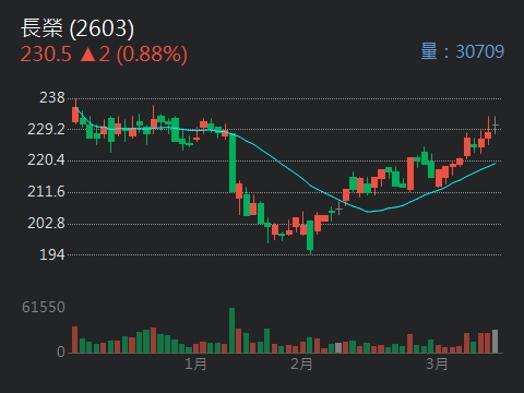 日本海運三雄之一的「日本郵船」半個月來漲約新台幣64元