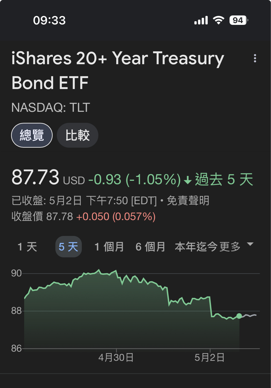 只買ETF,別碰個股 追蹤 熱心同學 Lv.10 2025年05月05日 09:36.已編輯 元大美債20年 國泰20年美債 中信美國公債20年 統一美債20年 展開 +4 9 0P 2則留言 分享 留言 讚 取消 送出 查看 2 則留言... 留言...