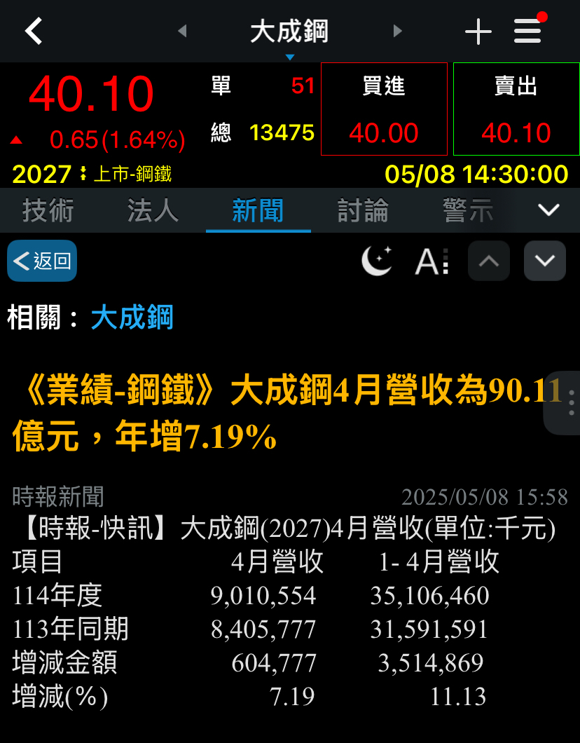 大成鋼相關討論
