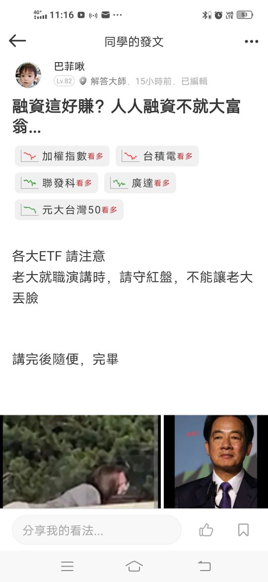 啾菲巴 追蹤 解答大師 Lv.83 2025年05月20日 12:51.已編輯 台積電 鴻海 加權指數 廣達 聯發科 展開 +5 繼續閱讀 108 0P 8則留言 分享 留言 讚 取消 送出 查看 8 則留言... 留言...