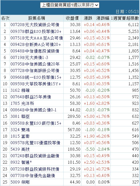 金森 追蹤 Lv.27 2025年05月23日 16:53 元大投資級公司債 群益ESG投等債20+ 元大AAA至A公司債 台新美A公司債20+ 中信優息投資級債 展開 +5 上櫃自營商買超一週以來排行 3 0P 0則留言 分享 留言 讚 取消 送出 留言... 目前沒有任何討論