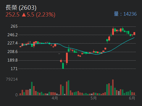 日本海運三雄之一的「日本郵船」半個月來漲約新台幣64元