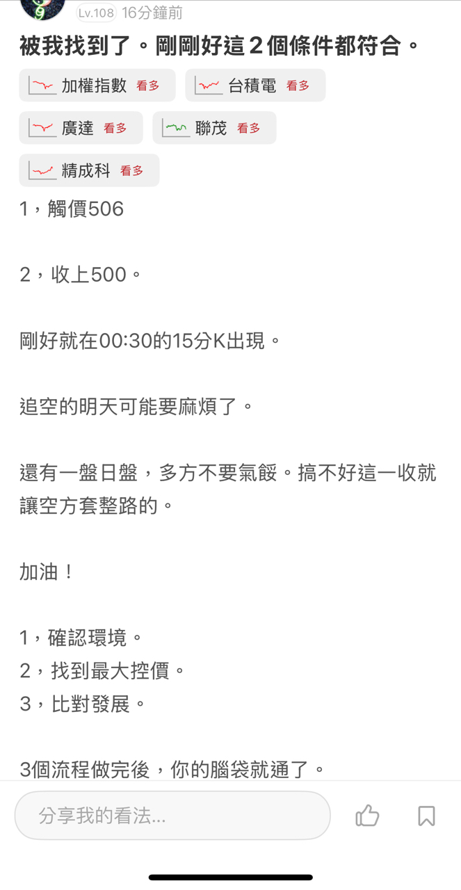 6元股先生9 追蹤 Lv.108 2025年06月20日 01:54 台積電 加權指數 精成科 聯茂 廣達 展開 +5 看看收上554後,會不會加速會到608。490不破為多方。 27 4P 2則留言 打賞 分享 留言 讚 取消 送出 查看 2 則留言... 留言...