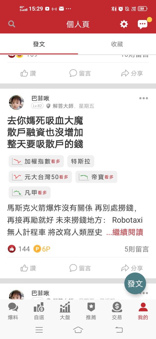 啾菲巴 追蹤 解答大師 Lv.83 2025年06月23日 15:30 TSLA 元大台灣50 凡甲 加權指數 展開 +4 繼續閱讀 78 0P 2則留言 分享 留言 讚 取消 送出 查看 2 則留言... 留言...