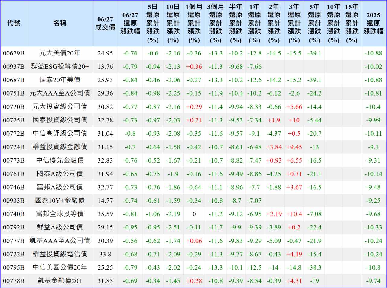 無股樂 追蹤 模範同學 Lv.63 2025年06月28日 22:11 元大美債20年 群益ESG投等債20+ 國泰20年美債 元大AAA至A公司債 元大投資級公司債 展開 +5 新台幣狂飆台灣散戶嚇壞!美債ETF驚現950億大逃亡潮 繼續閱讀 18 2P 7則留言 打賞 分享 留言 讚 取消 送出 查看 7 則留言... 留言...