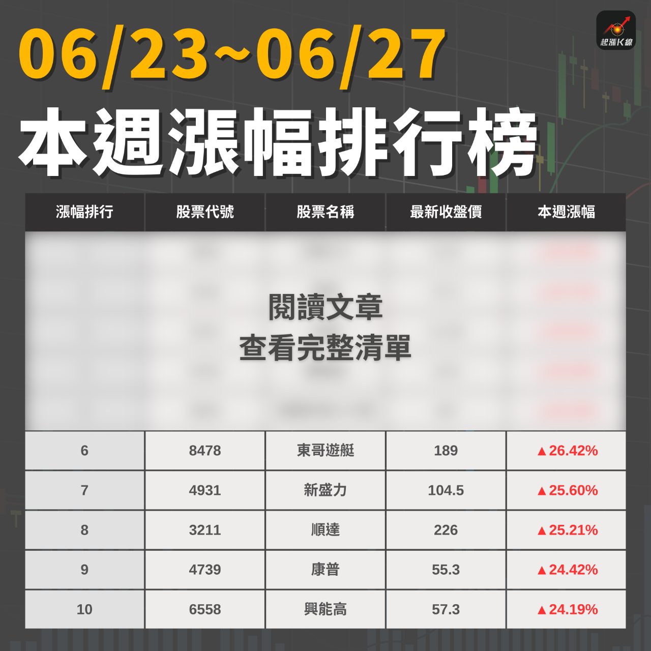 想抓起漲股🔥就用起漲K線💪 追蹤 好奇同學 Lv.39 2025年06月29日 11:55 AI晶圓廠建設熱潮,誰帶隊股價高飛? 台積電 鴻海 加權指數 廣達 緯創 展開 +6 【起漲K線週報】台股再強彈534點,「強勢股清單」搶先看! 9 0P 0則留言 打賞 分享 留言 讚 取消 送出 留言... 目前沒有任何討論