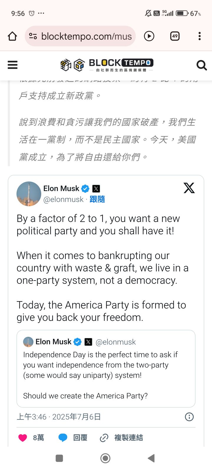 Sara Wang 追蹤 解答大師 Lv.104 2025年07月06日 10:05 加權指數 展開 +1 人外有人、天外有天❤️美國第三勢力正式崛起 繼續閱讀 563 23P 241則留言 打賞 分享 留言 讚 取消 送出 查看 241 則留言... 留言...