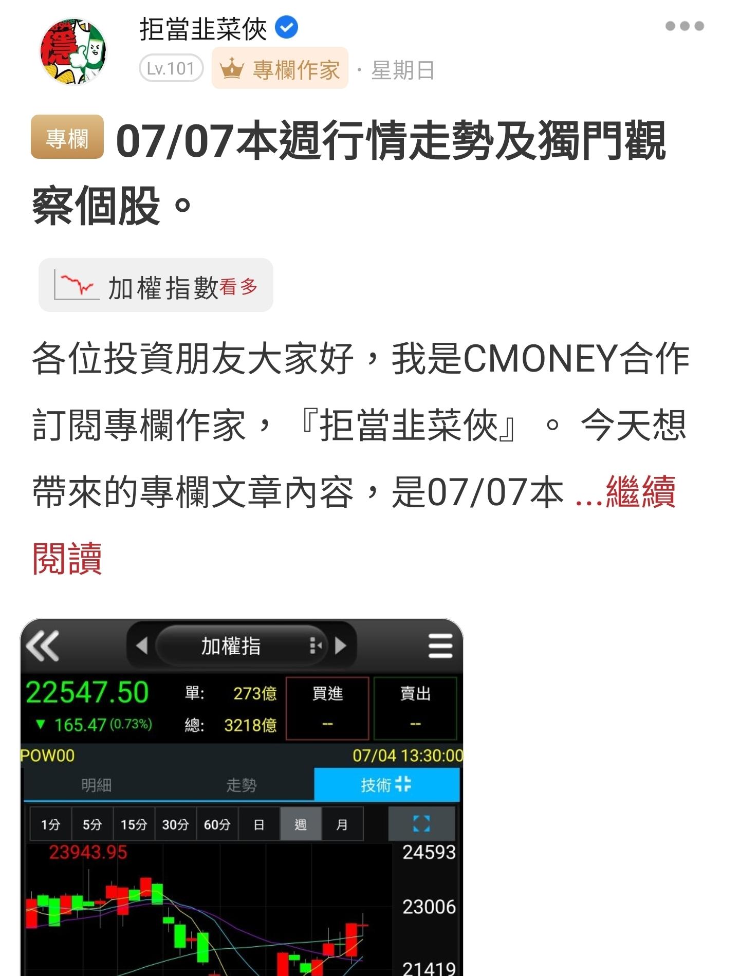 拒當韭菜俠 追蹤 專欄作家 Lv.101 2025年07月09日 19:39 川普關稅倒數!8月1日台灣關稅將如何? 錸寶 加權指數 定穎投控 金居 欣興 展開 +6 報復性反彈,超過一根漲停超好表現👊👊👊 繼續閱讀 57 0P 9則留言 打賞 分享 留言 讚 取消 送出 查看 9 則留言... 留言...