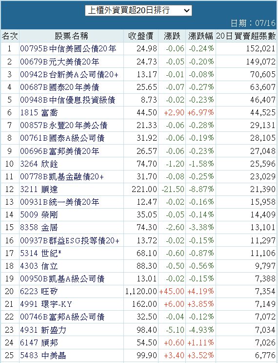 金森 追蹤 Lv.27 2025年07月16日 16:21 中信美國公債20年 元大美債20年 台新美A公司債20+ 國泰20年美債 中信優息投資級債 展開 +5 上櫃外資買超近20個交易日以來排行 2 0P 0則留言 分享 留言 讚 取消 送出 留言... 目前沒有任何討論
