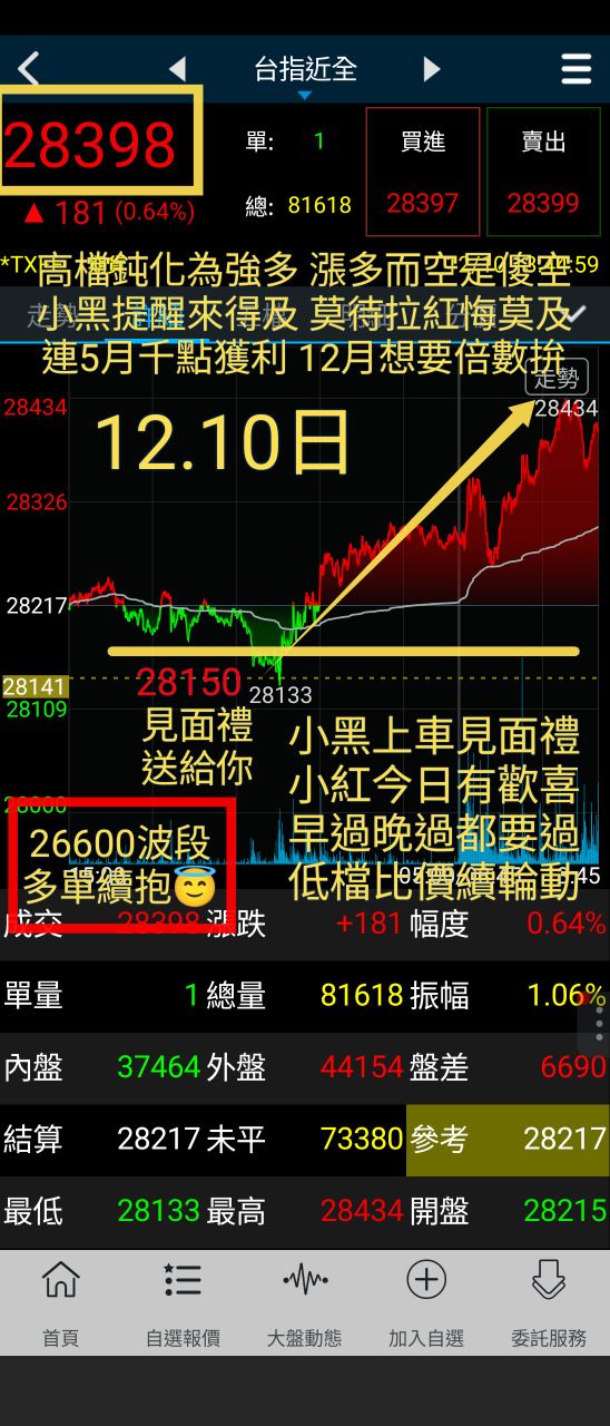 moje 追蹤 Lv.101 2025年12月10日 15:06 光洋科 普安 波若威 超豐 華城 展開 +5 台指期26600多單😇續拼賺2千🔥多頭就是很多頭😅 繼續閱讀 +18 49 2P 3則留言 打賞 分享 留言 讚 取消 送出 查看 3 則留言... 留言...