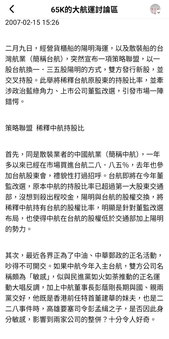 65K 追蹤 解答大師 Lv.51 2025年12月13日 06:25.已編輯 長榮 中航 台航 陽明 加權指數 展開 +5 大航運-經營權之爭的防禦手段~「股份交換」 繼續閱讀 127 7P 5則留言 打賞 分享 留言 讚 取消 送出 查看 5 則留言... 留言...