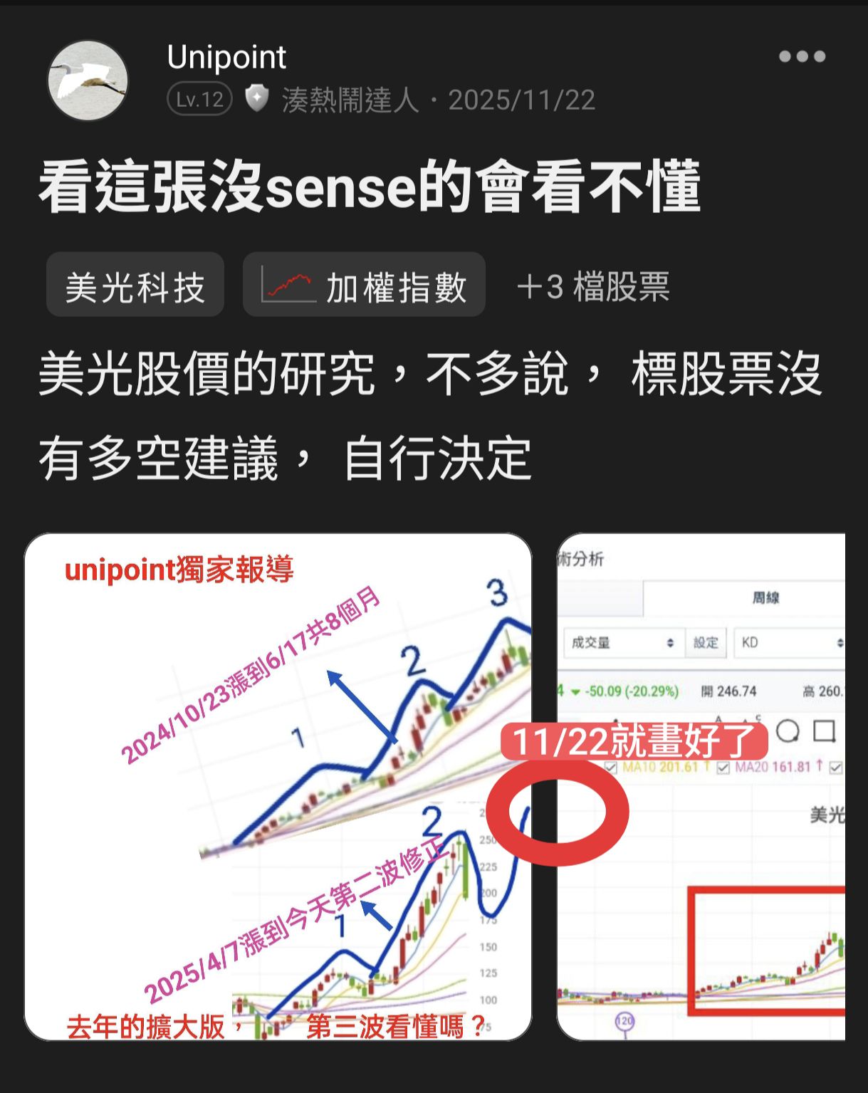 unipoint 追蹤 湊熱鬧達人 Lv.14 2025年12月13日 20:16 MU 加權指數 華邦電 展開 +3 繼續閱讀 +3 26 14P 4則留言 打賞 分享 留言 讚 取消 送出 查看 4 則留言... 留言...