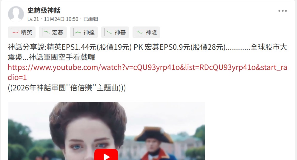 史詩級神話 追蹤 Lv.22 2025年12月14日 00:21.已編輯 精英 宏碁 神達 中石化 中工 展開 +5 精英下星期一還有機會挑戰宏碁的股價嗎? 17 2P 2則留言 打賞 分享 留言 讚 取消 送出 查看 2 則留言... 留言...