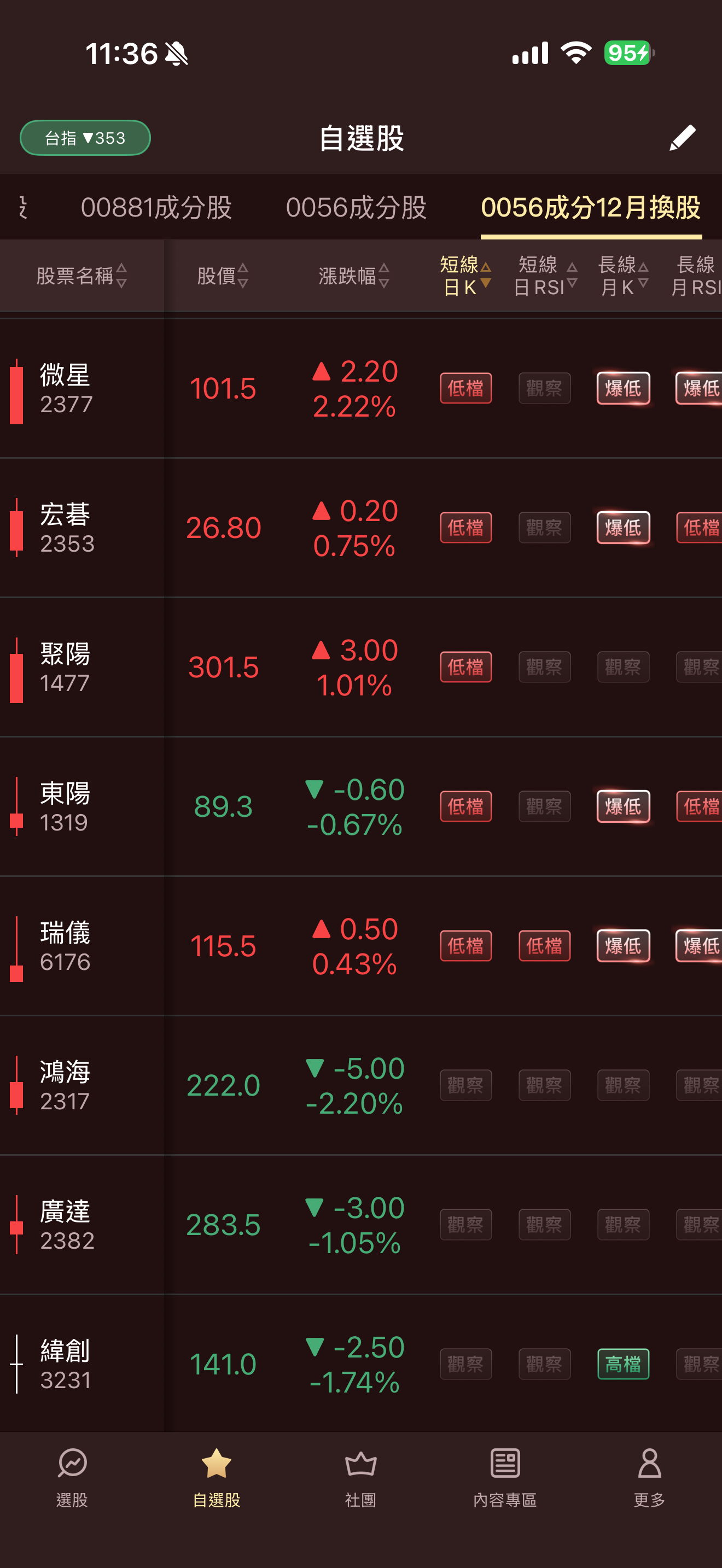 💵岱爺💵 追蹤 解答大師 Lv.30 2025年12月15日 11:39 大聯大 可成 華碩 統一 聯詠 展開 +5 0056最新成份股,個股低檔跟暴低訊號分享。 繼續閱讀 105 15P 12則留言 打賞 分享 留言 讚 取消 送出 查看 12 則留言... 留言...