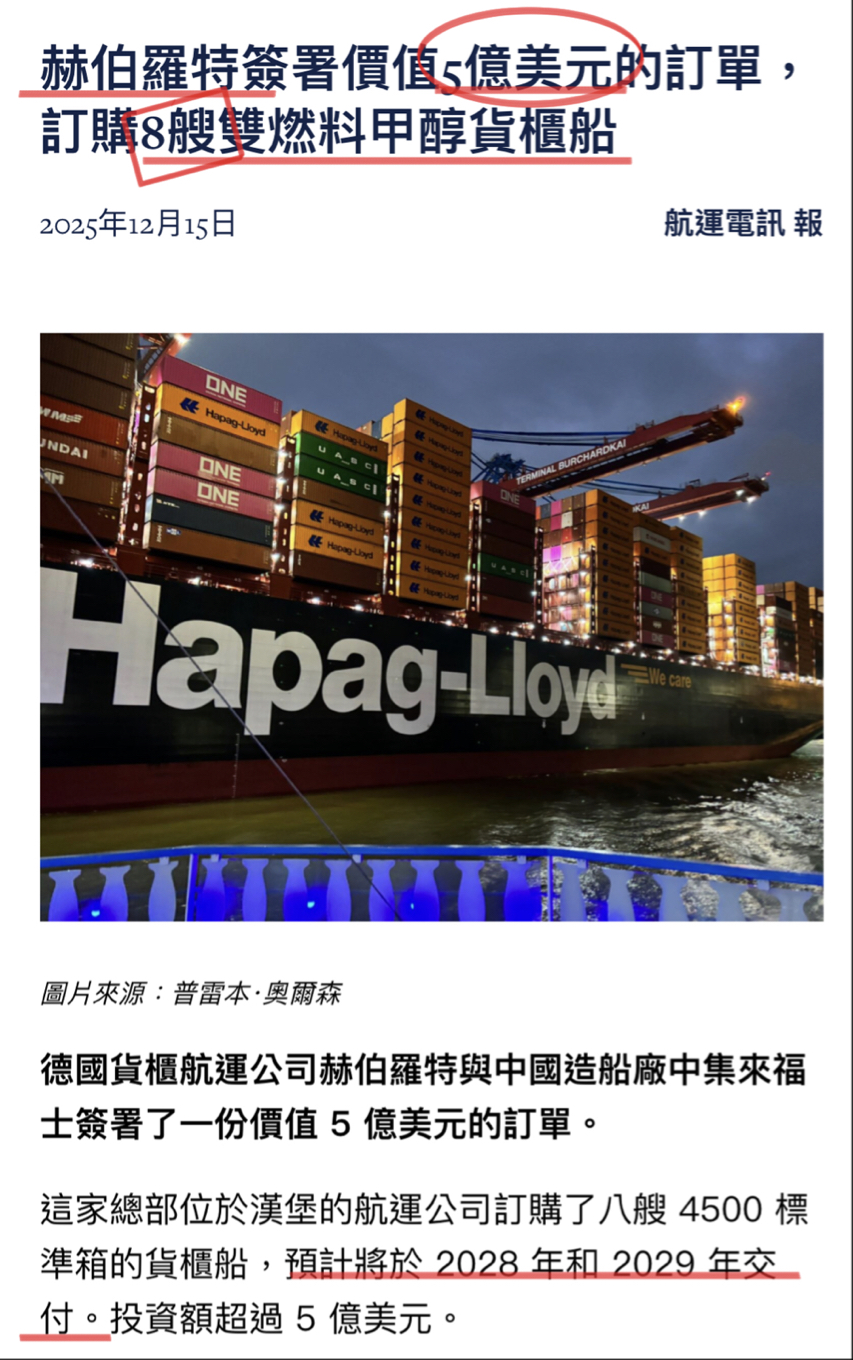 榮光煥發 追蹤 Lv.27 2025年12月15日 16:04 長榮 展開 +1 不讓馬哥、達哥、榮哥專美於前 赫伯砸5億美元訂購8艘雙燃料船 繼續閱讀 102 5P 5則留言 打賞 分享 留言 讚 取消 送出 查看 5 則留言... 留言...