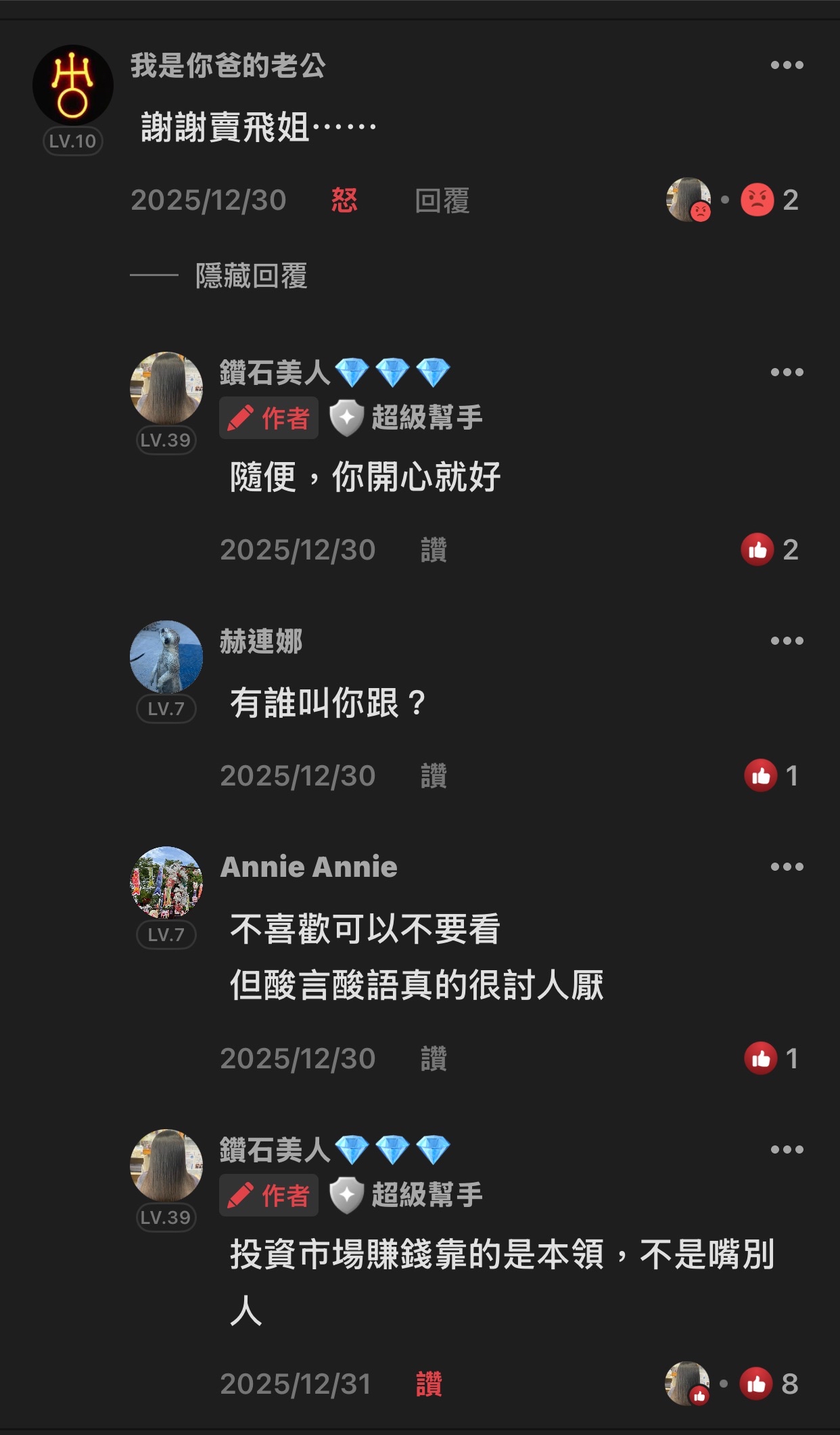 鑽石美人💎💎💎 追蹤 超級幫手 Lv.39 星期六 03:19.已編輯 菱生 力成 展開 +2 要賺多少是看老娘心情,我賣或不賣,干你屁事 繼續閱讀 +8 305 52P 57則留言 打賞 分享 留言 讚 取消 送出 查看 57 則留言... 留言...