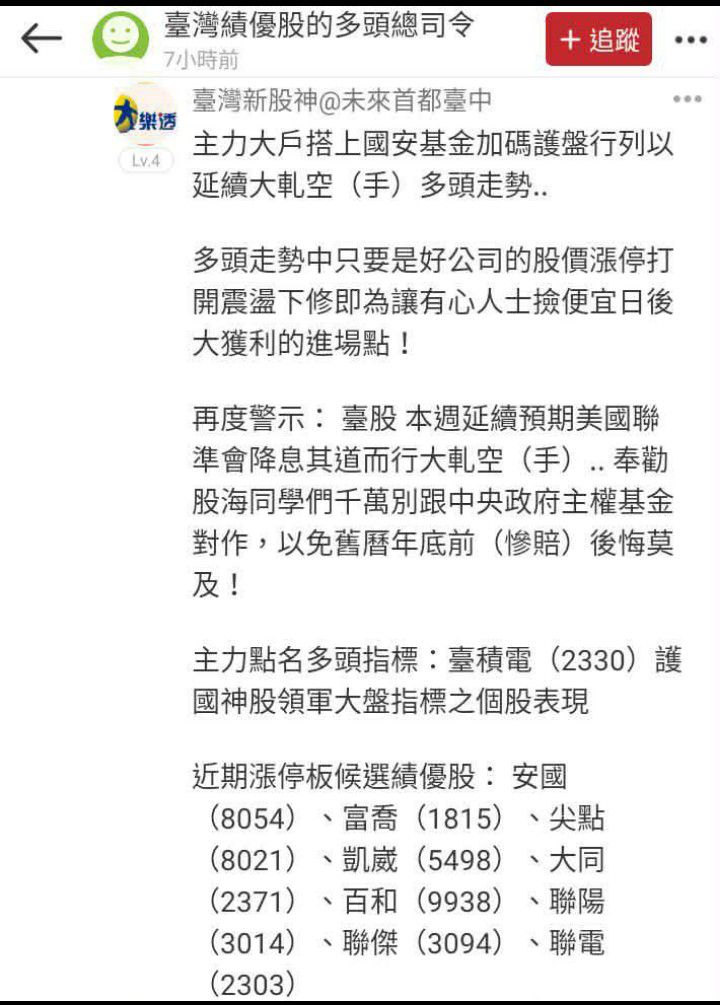 2487散戶反指標是大戶 追蹤 Lv.7 9小時前 聯電 富喬 安國 凱崴 尖點 展開 +5 量價背離、震盪下殺為誘空+後續軋空作準備:主力大戶已趁機卡位 繼續閱讀 +6 11 8P 1則留言 打賞 分享 留言 讚 取消 送出 查看 1 則留言... 留言...