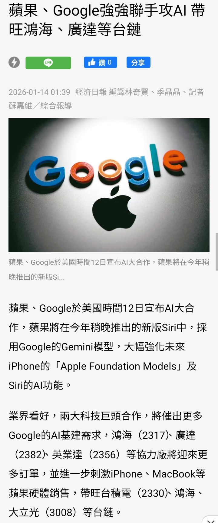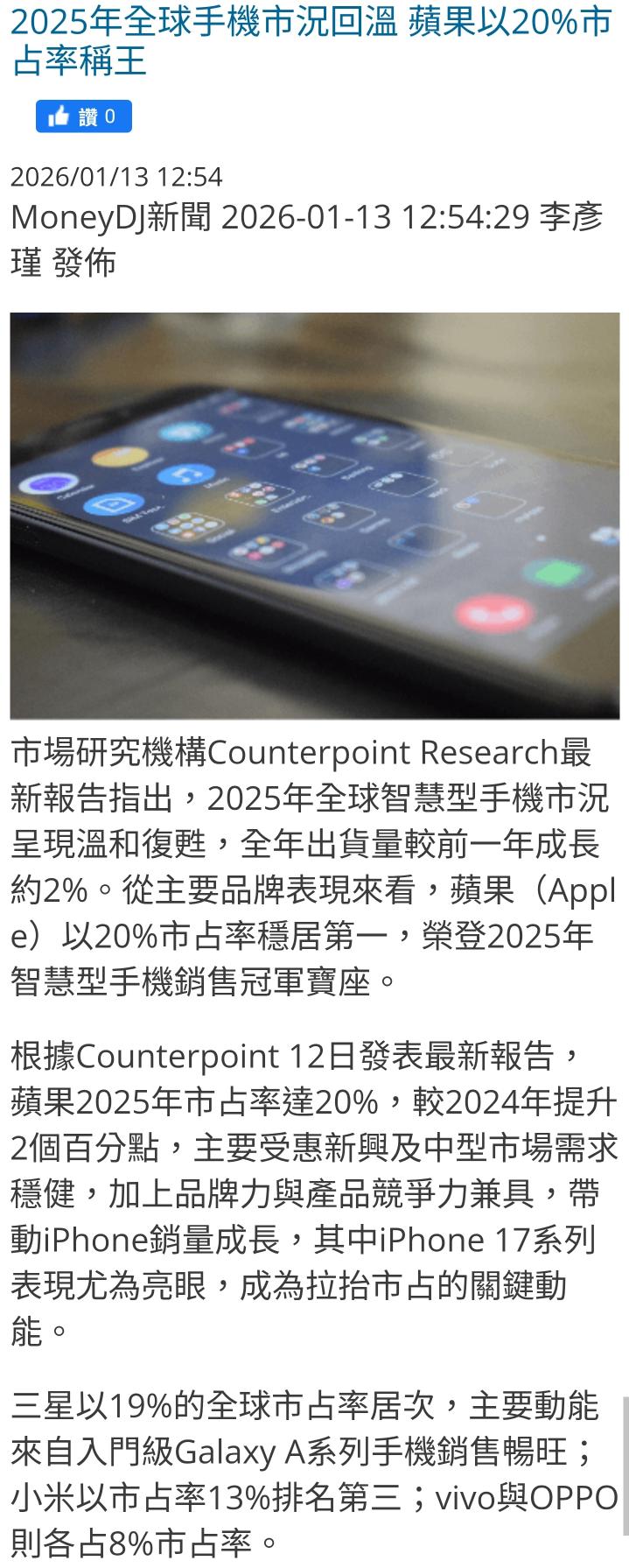 飆哥一路衝 追蹤 Lv.9 11小時前 華通 展開 +1 2025年手機蘋果20%市占稱王 蘋果Google聯手攻AI 繼續閱讀 4 2P 1則留言 打賞 分享 留言 讚 取消 送出 查看 1 則留言... 留言...
