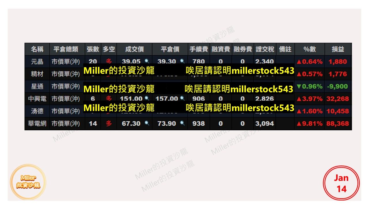 Miller的投資沙龍 追蹤 超級幫手 Lv.30 星期三 13:44 元晶 中興電 湧德 精材 華電網 展開 +5 繼續閱讀 17 10P 0則留言 打賞 分享 留言 讚 取消 送出 留言... 目前沒有任何討論