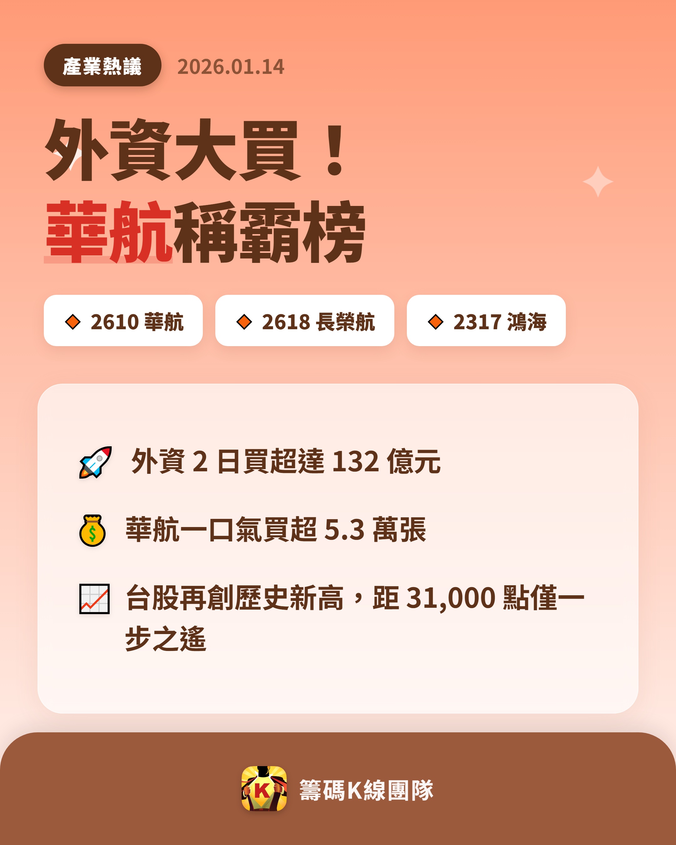 1月14日!外資拉高指數佈局空單等國安出貨!