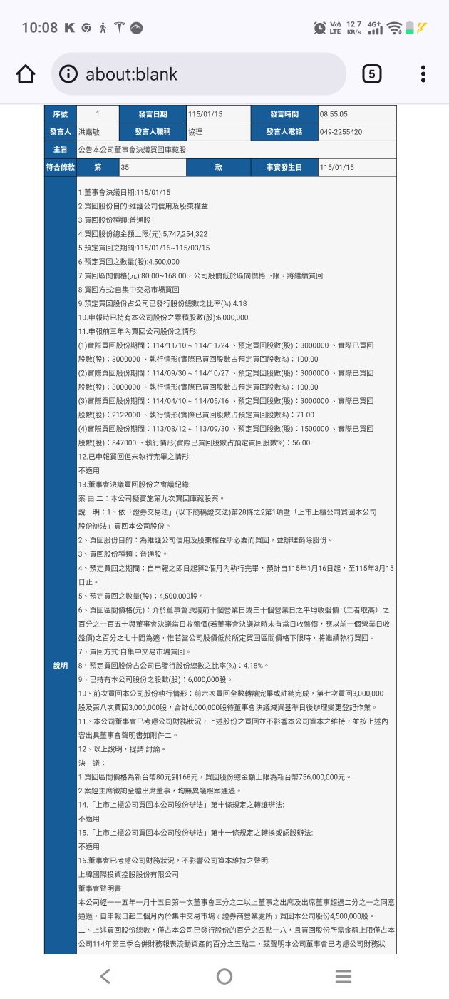 李岳輝 追蹤 好奇同學 Lv.25 昨天 10:32 上緯投控 展開 +1 明天買庫藏股4500張 不要公司買給你看 繼續閱讀 15 15P 0則留言 打賞 分享 留言 讚 取消 送出 留言... 目前沒有任何討論