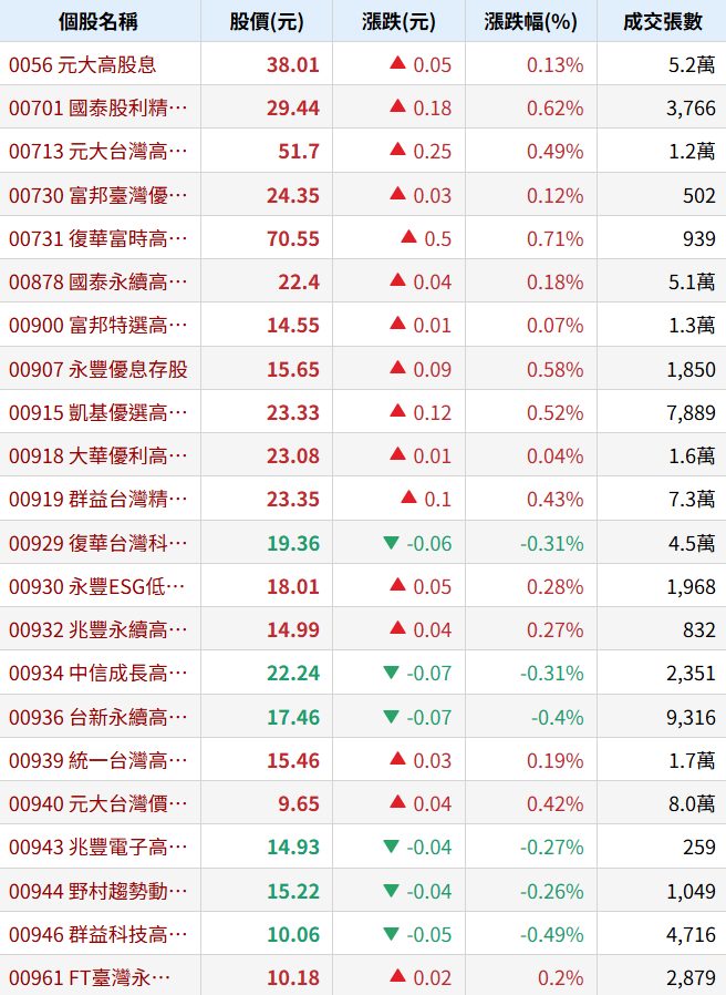 麥浪裏的拾穗者🌾 追蹤 解答大師 Lv.24 6小時前 元大高股息 國泰永續高股息 群益台灣精選高息 復華台灣科技優息 加權指數 展開 +5 10 0P 1則留言 分享 留言 讚 取消 送出 查看 1 則留言... 留言...