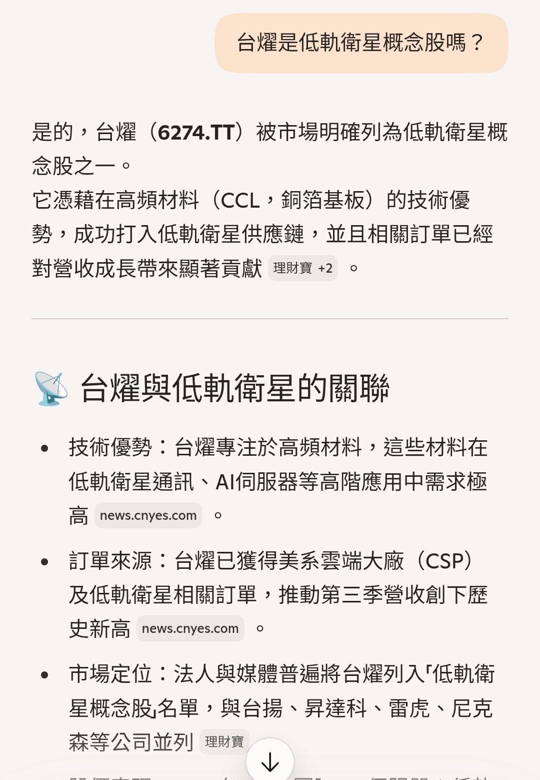 台燿是低軌衛星概念嗎?