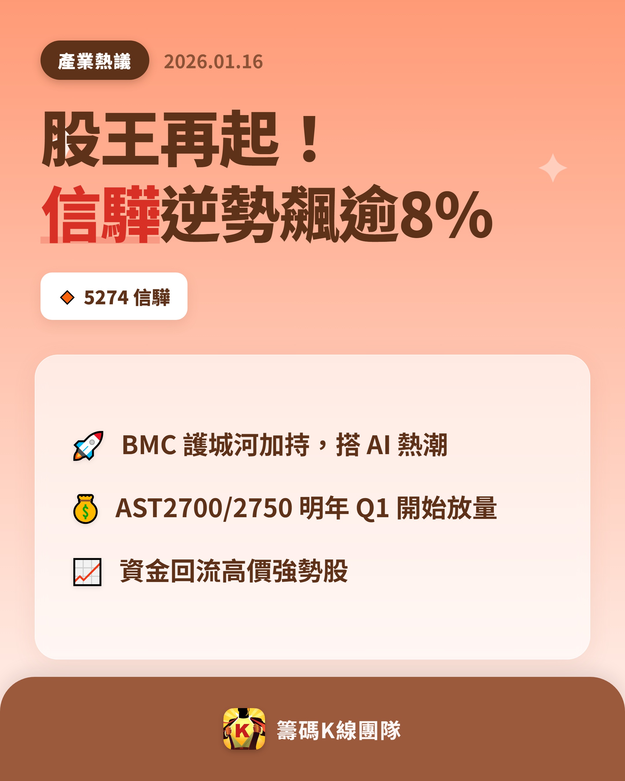 今晚大家心情應該很複雜吧? 打開手機全是台積電的狂賀新聞:毛利率 65% 破紀錄、要砸多金買設備... 再看看我們的長榮,今天成交量縮到快不見了,是不是很多人心裡的小惡魔開始說話:「主力大戶會不會把長榮賣掉,全部去追台積電?」、「我是不是也該快點跳槽?」 身為陪大家守在船上的老戰友,今晚我要急踩剎車! 我整理了幾個連主力都不想告訴你的**「資金流動秘密」,看完你就會知道,為什麼現在賣長榮是「自殺式操作」**。 1️⃣ 秘密一:長榮的大戶跟台積電的大戶,是「不同品種的生物」 大家最怕的就是:「持有長榮的大戶(ETF、基金)會不會跑去買台積電?」 答案是:他們想跑也跑不掉! 為什麼?因為長榮的主力部隊是**「高股息 ETF」**(像 00919、00940 等)。 這些大戶身上綁著鐵鍊,他們的選股規則是:「殖利率要夠高(例如 5% 以上)」。 長榮殖利率有 9%,是他們的核心持股。 台積電雖然會漲,但殖利率不到 2%。 這就像是**「吃素的人(高股息基金)」,就算看到「頂級牛排(台積電)」**再香,他們也不能吃啊! 所以,不用擔心主力會棄船,因為規則限制了他們必須死守在長榮這艘高配息的船上。 2️⃣ 秘密二:明天資金怎麼流?期待「香檳塔效應」! 台積電財報這麼好,明天開盤資金肯定會被吸走,長榮會不會完蛋? 別慌!這只是**「早盤」**的假象。 資金流動就像**「倒香檳塔」**: 第一階段(早盤): 資金先灌滿最上面那杯(台積電)。這時候長榮可能會被冷落,甚至小跌,這時候千萬別被嚇跑! 第二階段(中晚盤): 等到台積電漲不動了,那些賺飽的聰明錢就會**「溢出來」**。 流去哪裡? 流向**「還在地板、還沒漲、安全」**的地方。 這時候,股價還在低檔的長榮,就會變成資金最好的避風港。所以,明天如果看到長榮不動,那是因為大家在排隊買台積電,等他們買完了,就會回頭來找我們了。 3️⃣ 秘密三:別去「高速公路」上亂切車道 這是我最想勸大家的一句話。 看隔壁車道(電子股)飆很快,你心急把方向盤一轉切過去。 結果通常是什麼? 你一過去,那邊就塞車了(利多出盡),反而是你原本的車道(長榮)開始動了。 聰明的大戶明天會趁著大漲,把台積電獲利放口袋,然後轉進長榮。我們現在賣掉,剛好就是去幫大戶**「洗碗」**。千萬別做這種傻事。 4️⃣ 最後的底氣:長榮手上的「王牌」 除了資金面,別忘了版上高手提醒我們的基本面大禮包:環保法規 (IMO)。 當別家航運公司的舊船被迫報廢、減速的時候,只有長榮滿手**「全新的環保船」可以全速衝刺。 這代表長榮已經進化了,它不再是以前那個暴起暴落的景氣循環股,而是能穩定賺錢**的資優生。 🌙 結語:忍耐是為了吃更甜的果實 我們不要羨慕隔壁的煙火。 他們有 65% 的毛利,我們有 9% 的殖利率 和 3 月的股息行情。 明天早上如果看到台積電大漲、長榮不動,請深呼吸,告訴自己:「這是在累積能量!」 守好手中的船票,不要倒在黎明前。等到資金從電子股流回來的那一天,就是我們微笑的時候。 大家晚安,明天我們繼續淡定看戲!💪 (以上觀點整理自市場籌碼邏輯與基本面分析,幫我按讚、打賞+追蹤,大家一起團結挺住,逼主力提早發車)