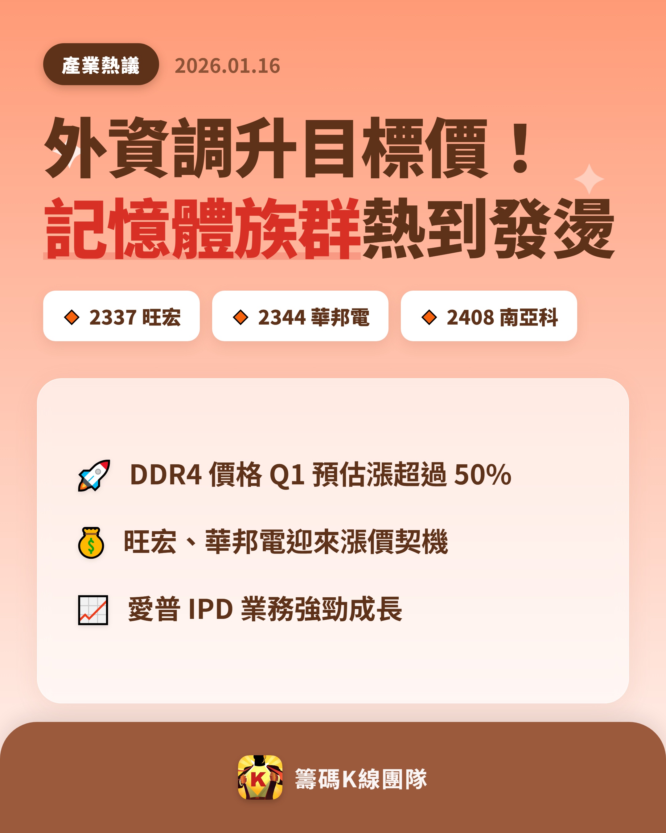 趨勢風向球 追蹤 Lv.19 3小時前 焦點股》台積電攻高1740!這三檔同步漲→ 旺宏 華邦電 南亞科 愛普* 力積電 展開 +6 繼續閱讀 6 0P 0則留言 打賞 分享 留言 讚 取消 送出 留言... 目前沒有任何討論