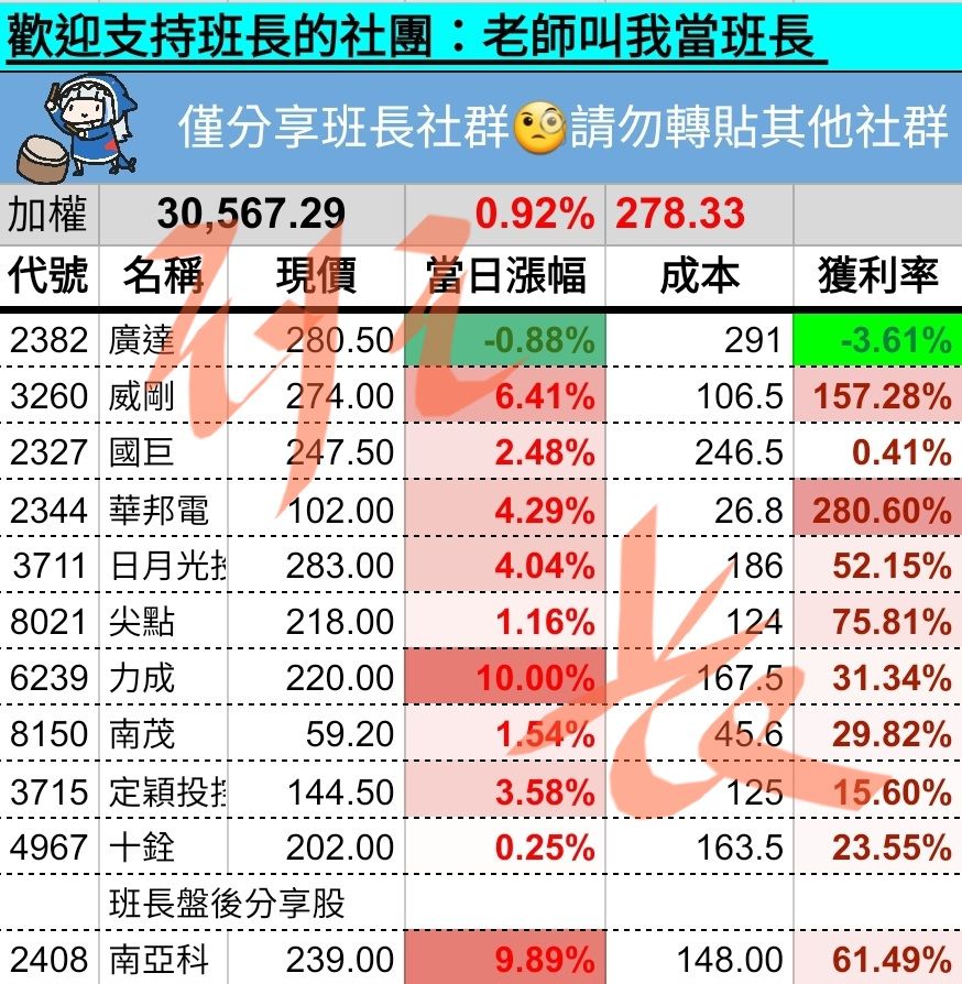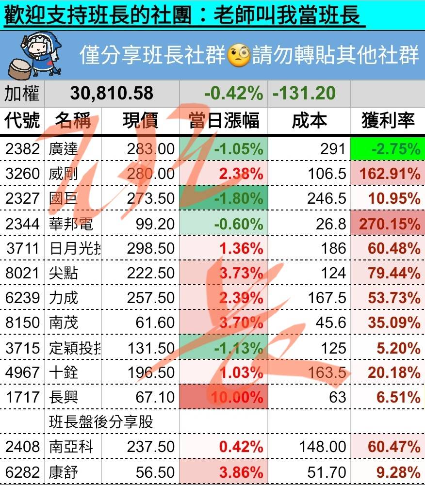 ⚠️班長的個人盤中訊息