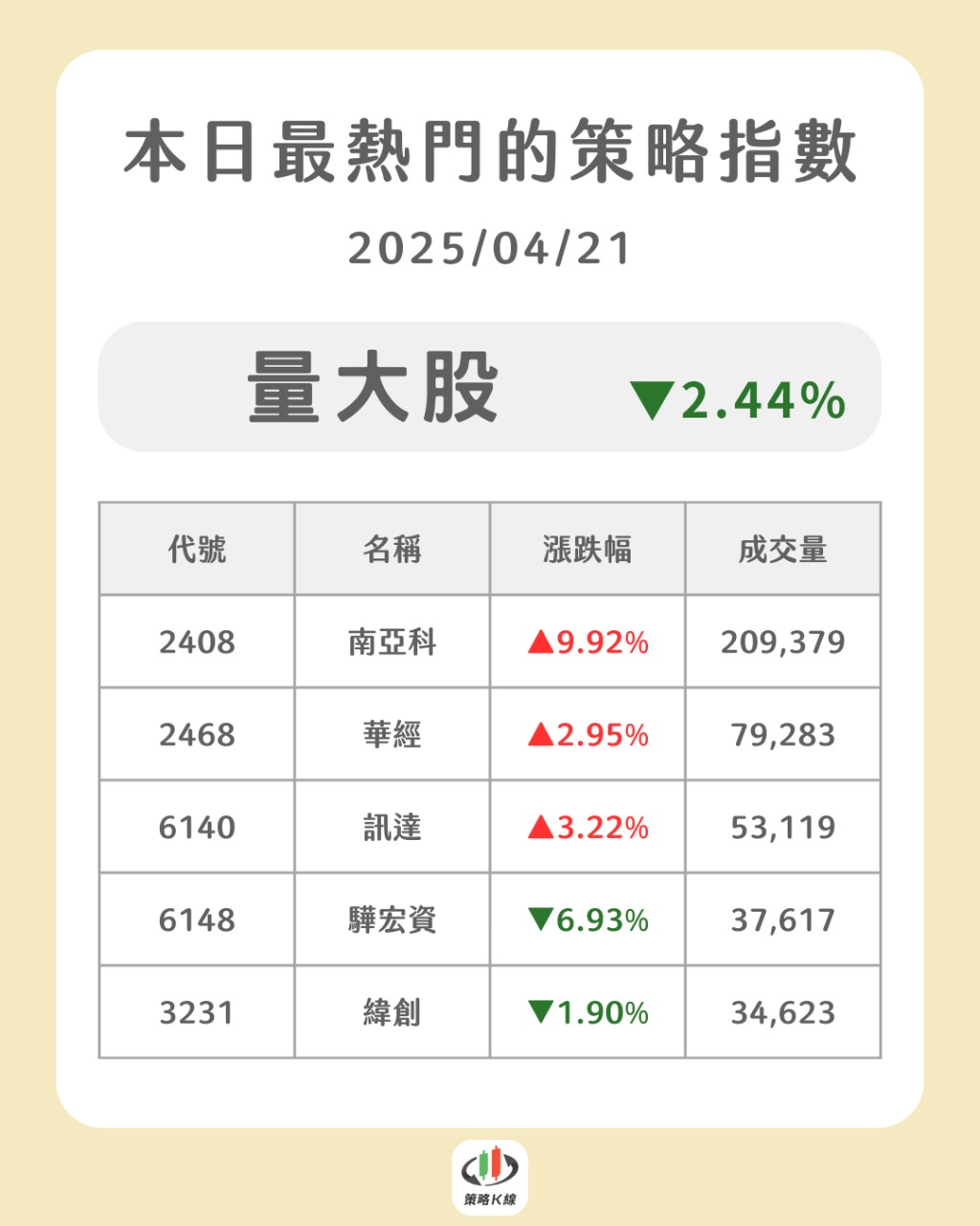 想抓起漲股🔥就用起漲K線💪 追蹤 好奇同學 Lv.39 2025年04月21日 18:00 台積電Q1財報優於預期,適合進場嗎? 和椿 有成精密 驊宏資 陞泰 大成鋼 展開 +6 繼續閱讀 5 0P 0則留言 分享 留言 讚