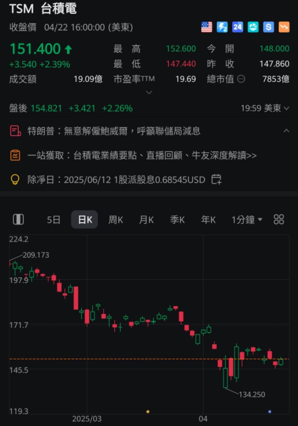 Locust_H 追蹤 熱心同學 Lv.12 2025年04月23日 08:31.已編輯 台積電Q1財報優於預期,適合進場嗎? 加權指數 台積電 展開 +3 4/23 盤前紀錄 台積電&台指期指數 繼續閱讀 6 1P 0則留言 打賞 分享 留言 讚