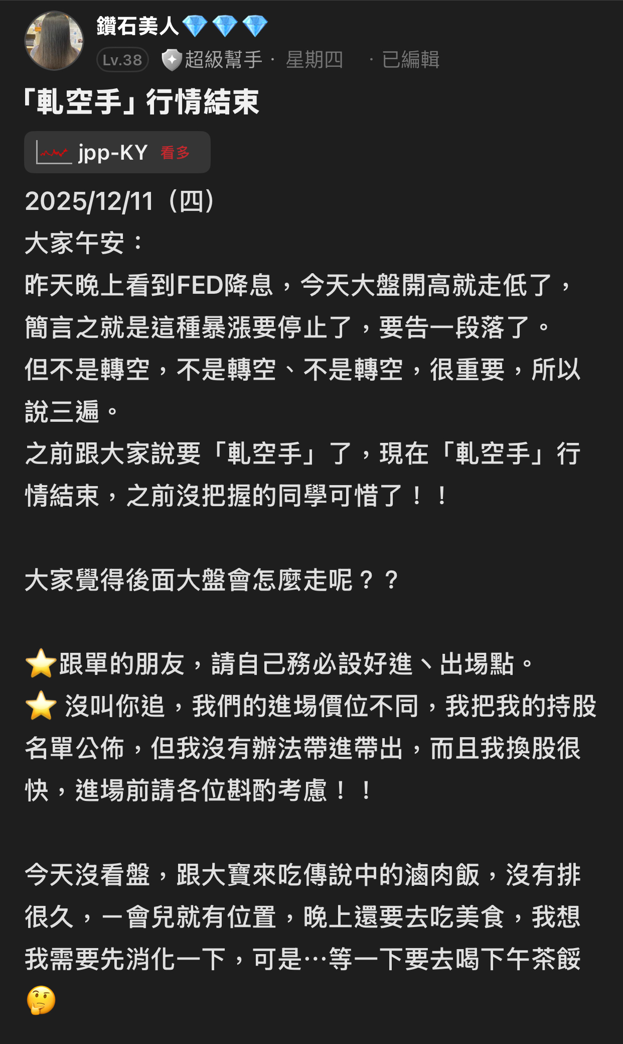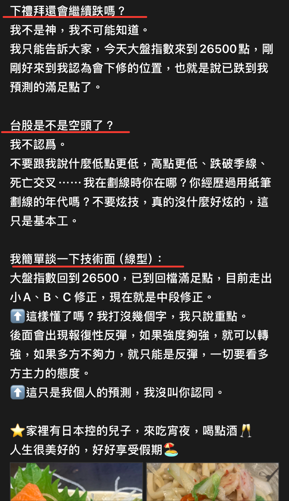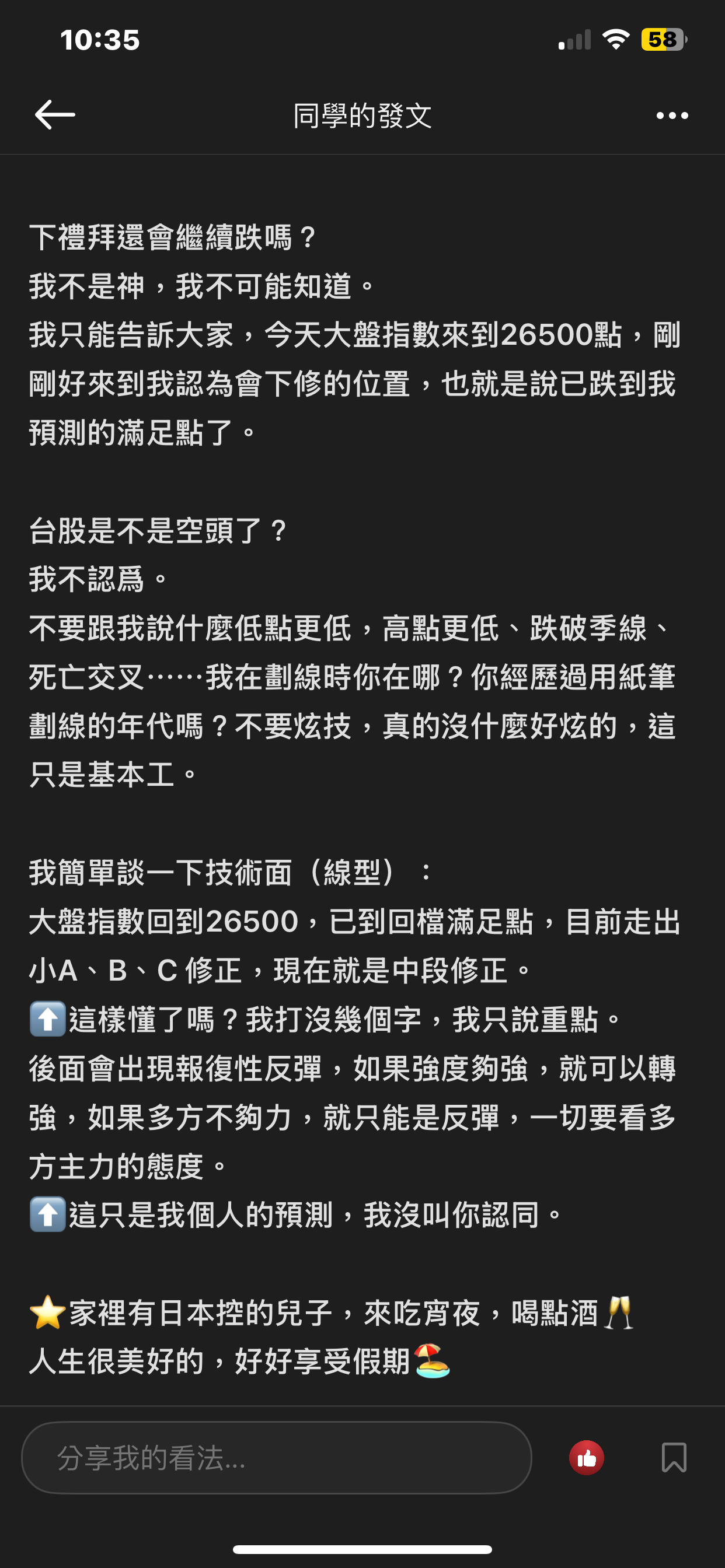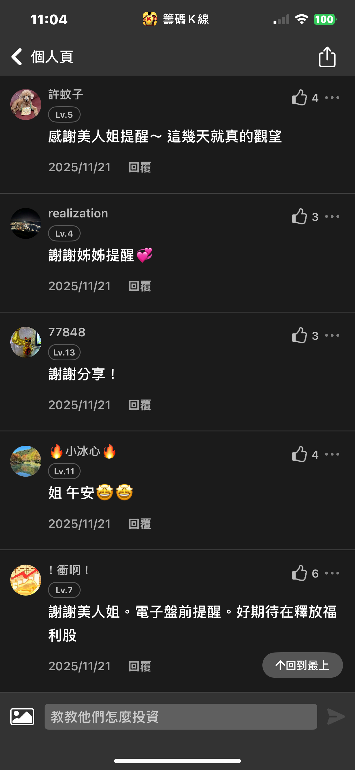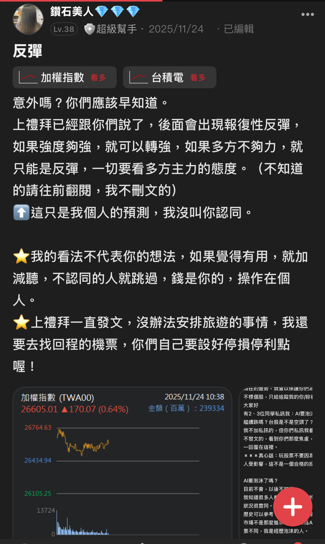 出言不遜,我直接封鎖,聽清楚!這是我的版,我做決定!!! 還有⋯不要開小號來留言和按噓👎,你們不用賺錢嗎?或者這就是你們的職業?? 我不追明牌,因為我要成為明牌 我不會退縮,因為我會一直學習 我不用做球,因為我向來是單打 教養禮貌的,視之朋友 以禮相待 傲慢粗魯的,視如敝屣 嗤之以鼻 投資市場裡 ...繼續閱讀