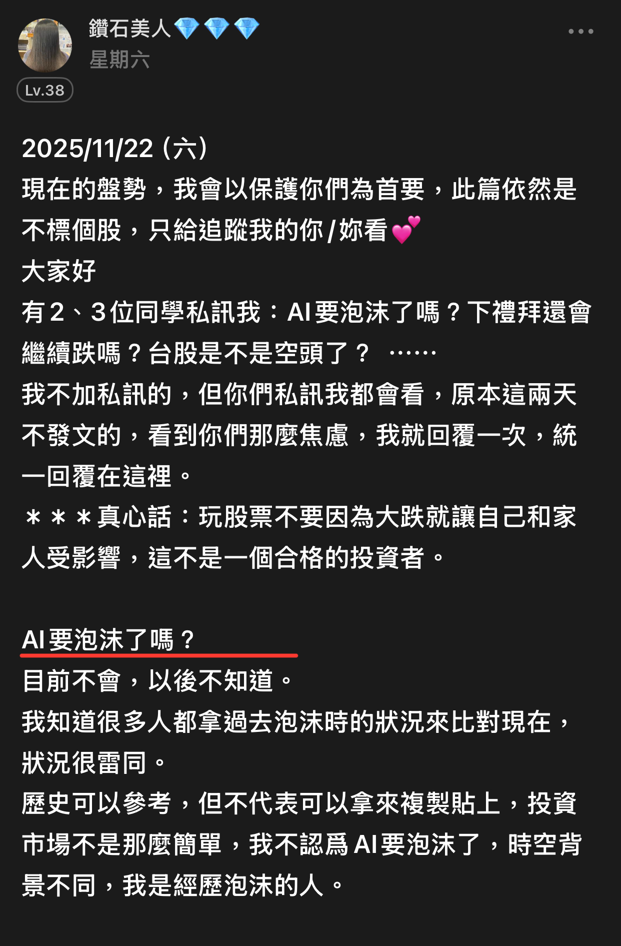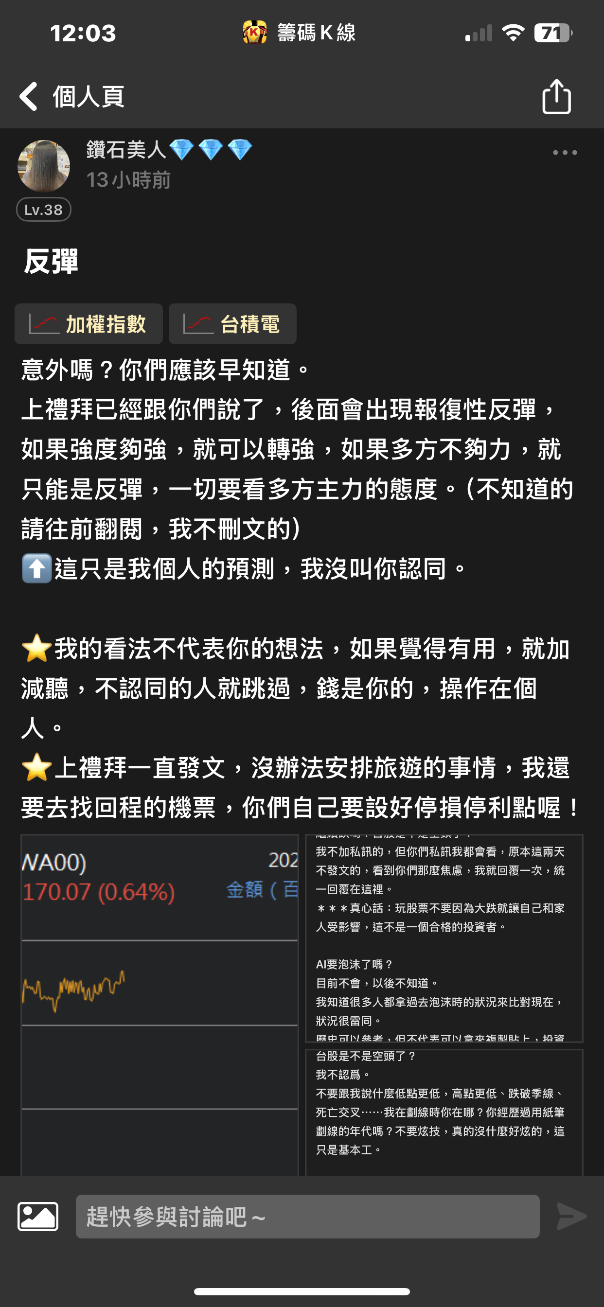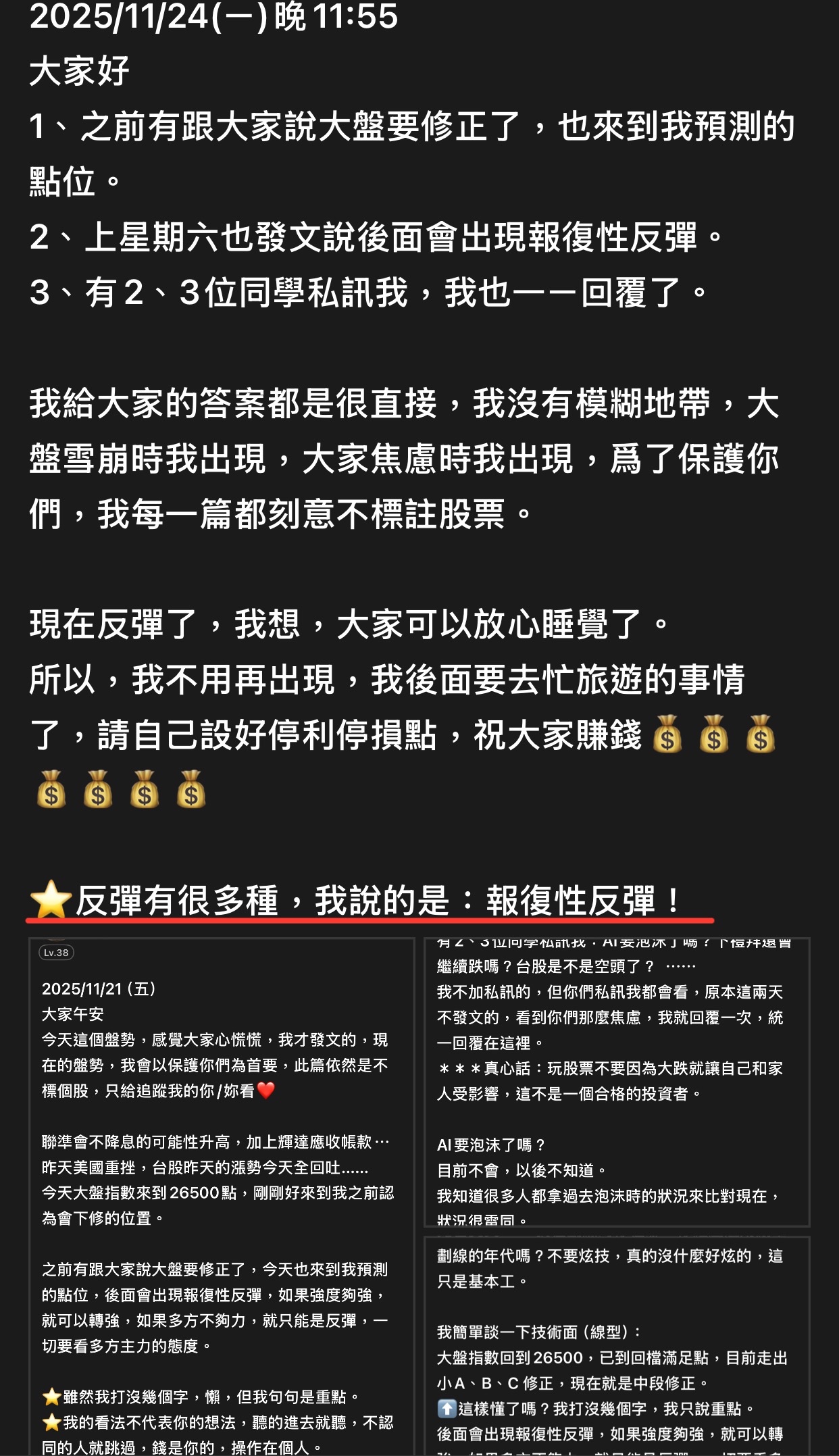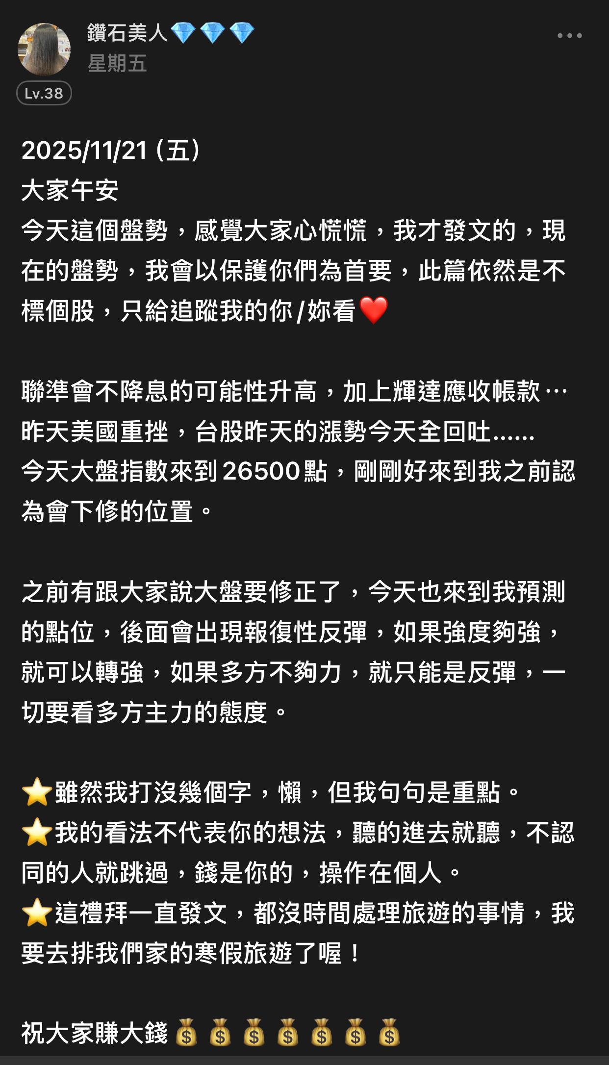 出言不遜,我直接封鎖,聽清楚!這是我的版,我做決定!!! 還有⋯不要開小號來留言和按噓👎,你們不用賺錢嗎?或者這就是你們的職業?? 我不追明牌,因為我要成為明牌 我不會退縮,因為我會一直學習 我不用做球,因為我向來是單打 教養禮貌的,視之朋友 以禮相待 傲慢粗魯的,視如敝屣 嗤之以鼻 投資市場裡 ...繼續閱讀