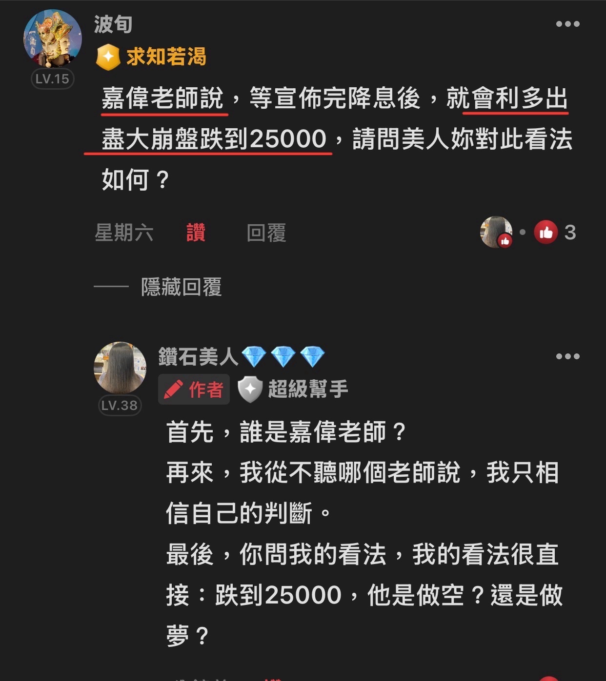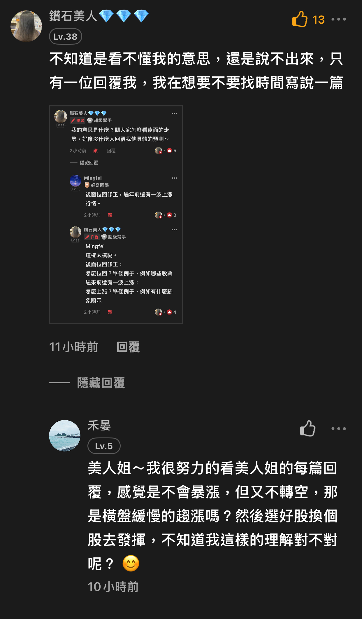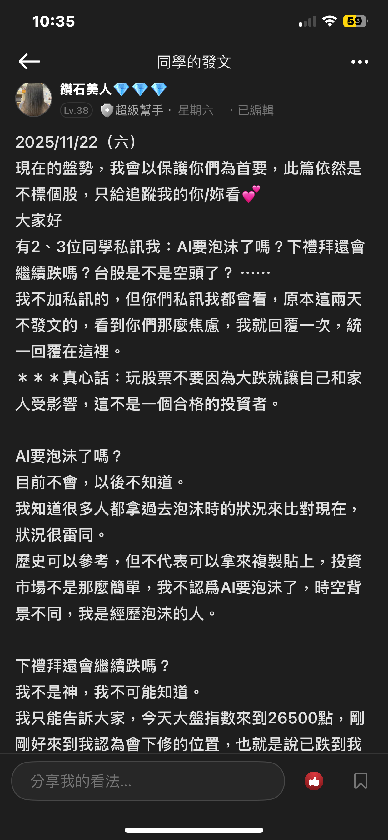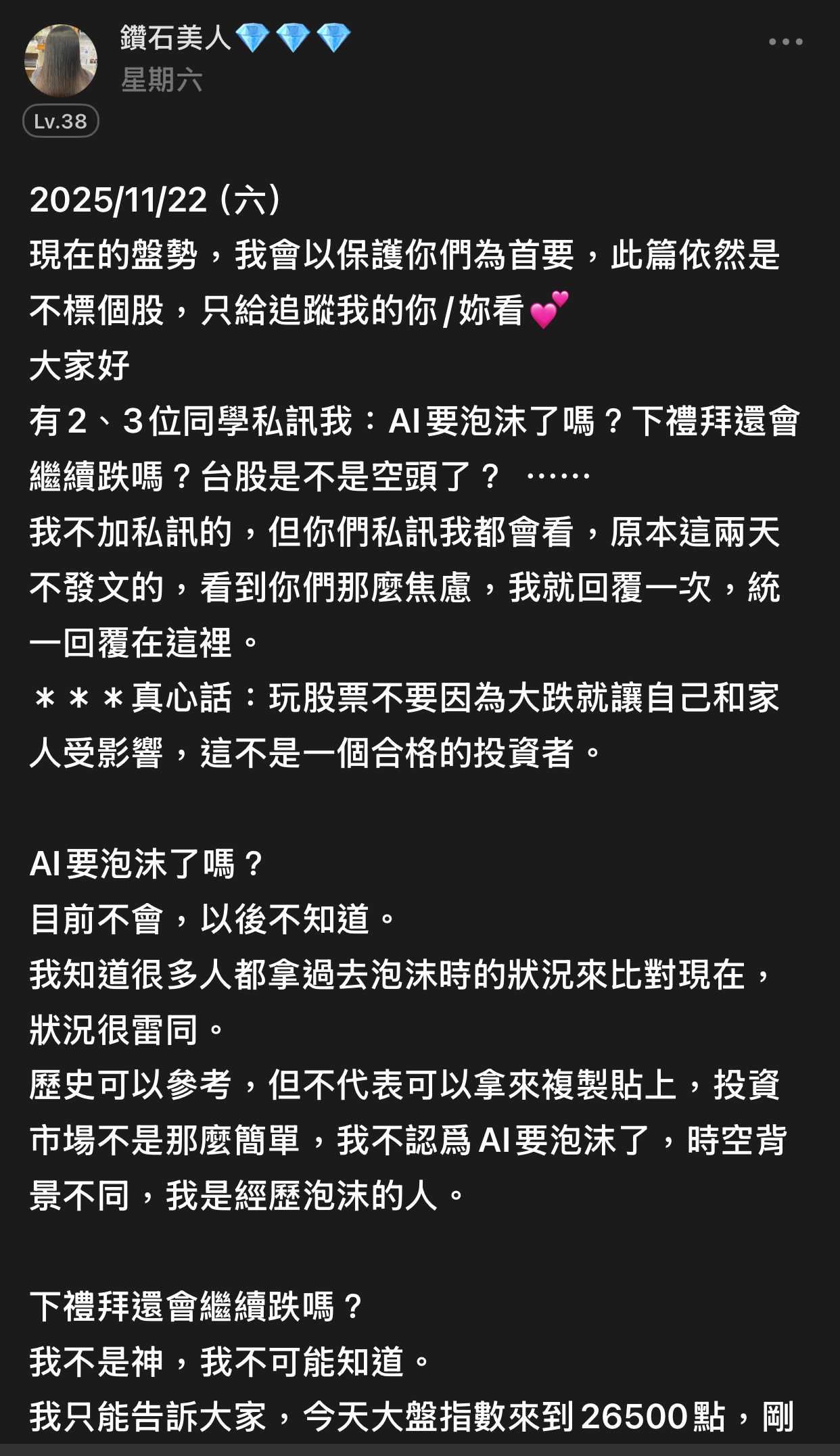 出言不遜,我直接封鎖,聽清楚!這是我的版,我做決定!!! 還有⋯不要開小號來留言和按噓👎,你們不用賺錢嗎?或者這就是你們的職業?? 我不追明牌,因為我要成為明牌 我不會退縮,因為我會一直學習 我不用做球,因為我向來是單打 教養禮貌的,視之朋友 以禮相待 傲慢粗魯的,視如敝屣 嗤之以鼻 投資市場裡 ...繼續閱讀