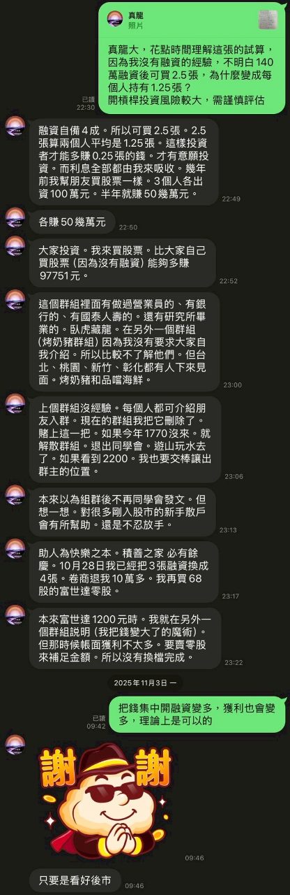 各位大大好,這兩天卯起勁,投入半數資產約200萬,買了86張,請問各位上看多少呢?
