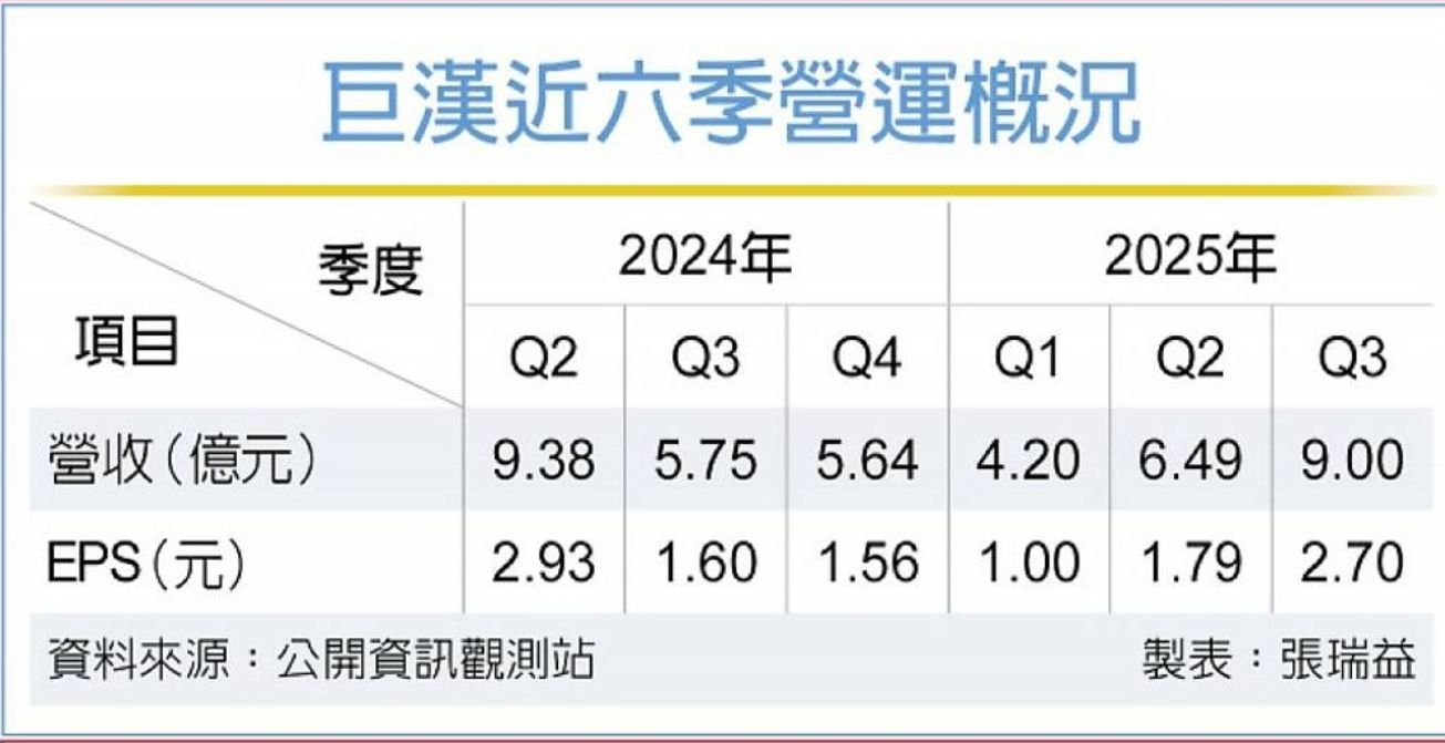 巨漢在手訂單有望衝百億,營運動能往上