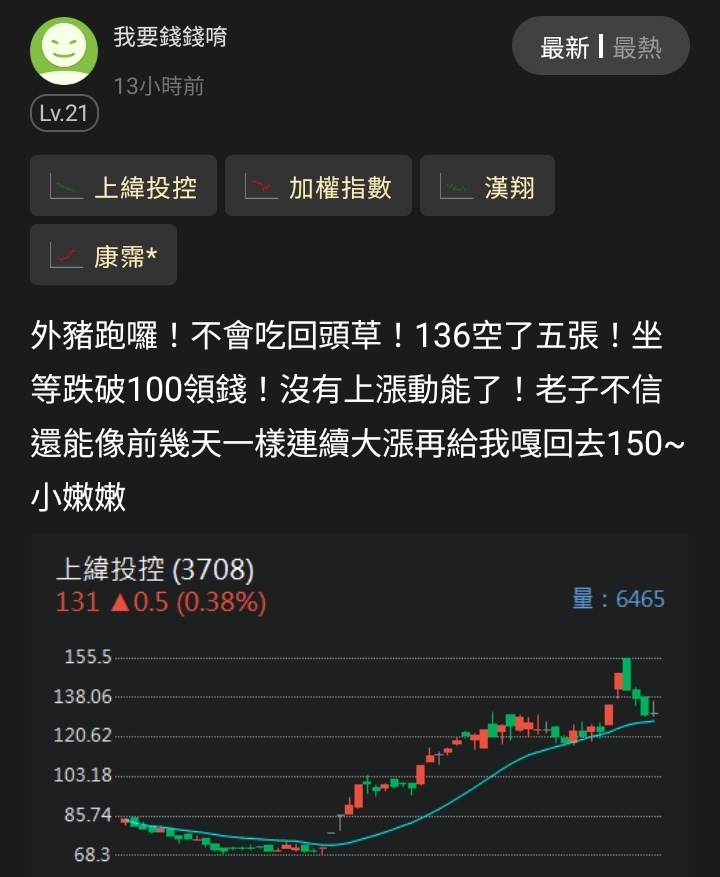 請問各位大大一下 小妹我在上藥有42張,價格在26元 現在全部換去可寧衛還有機會換血回來嗎? 雖然可寧衛已經一波完了…但我還是想問一下資深的哥哥姊姊們~ 或是等上藥的Q4季報呢?看會不會虧轉盈?然後回到2x之類的? 別問我為什麼會買在26元了…. 近兩年前,新手剛出入股市,還什麼都不懂,那時候2024/3月的時候看到一位飛x翔的大大,一直喊一直喊 也好多人跟,我一不小心也沖昏了頭就下注了,當然買賣是自己決定,我也沒怪任何人,但在這被套的兩年時間我也認真研究了一下股票,相信在給我一次機會絕不會像當初那麼傻了