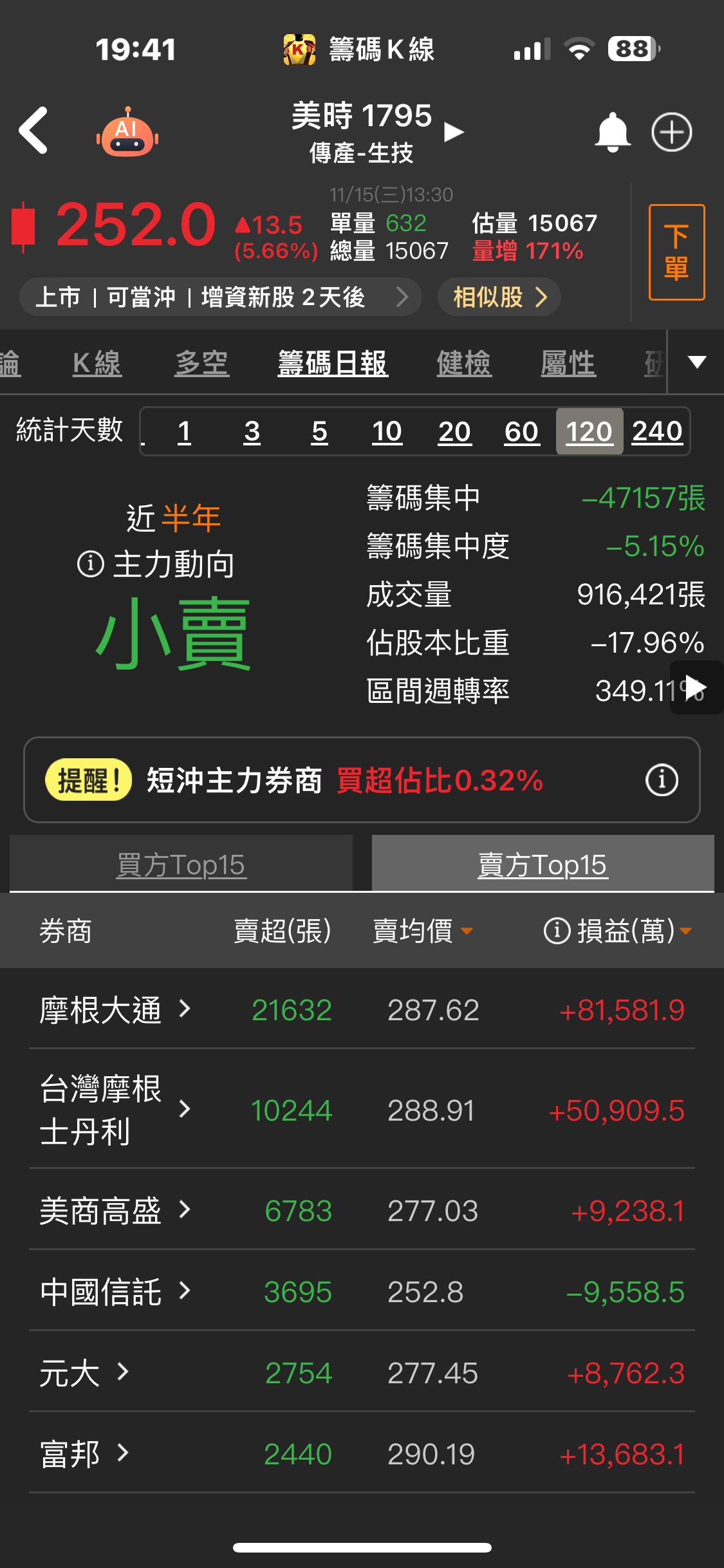 目前從開盤到現在的狀況,台積電開高之後目前是開高走低且目前預估量約58000張,因此可初步判定台積電雖然有展開日線第5波的攻勢,但不是很乾脆,是有可能創高一小段就拉回的走勢,如果是這樣台積電第5波不會很長,而且不能排除這真的非常有可能就已經是確認目前台積電(加權指數)就是漲5-5末升段了,當然由於目前最大可能是不斷創一小段新高就拉回的走勢,因此時間會拖的很久,目前先不考慮走空就是個股表現。 至於個股表現今天還是記憶體族群表現最好,而且不論記憶體次族群製造、模組、IC封測、IC設計都有好幾檔股票大漲,再度驗證記憶體就是市場續航力最強主流。