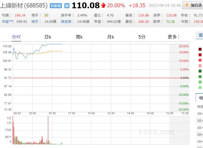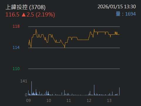 上緯投控(3708)重要資訊 成交109、0(0%) 當沖比