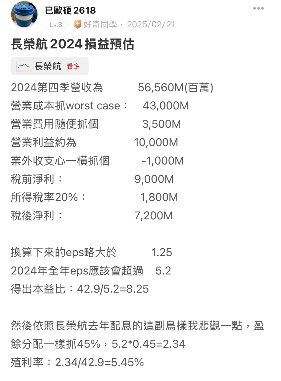 長榮航2024損益預估