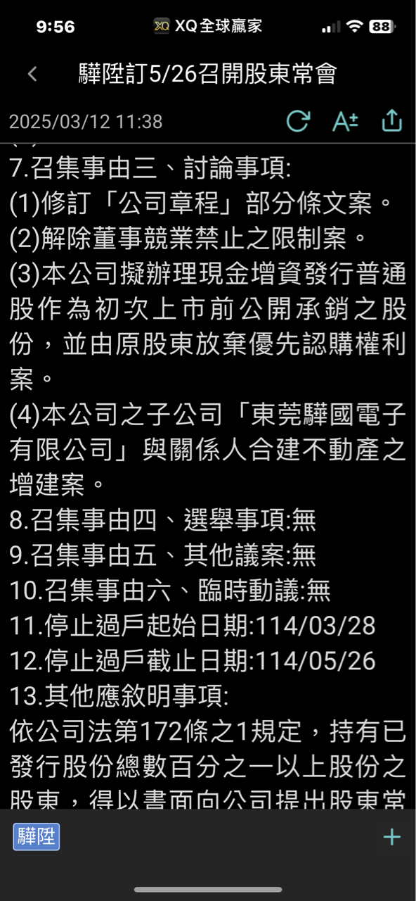 大樂norman 追蹤 求知若渴 Lv.7 2024年11月21日 21:42 驊陞 展開 +1 驊陞現增股訂11/26起發放並興櫃買賣 - 新聞 - MoneyDJ理財網 www.moneydj.com 12 3P 9則留言 打賞 分享 留言 讚