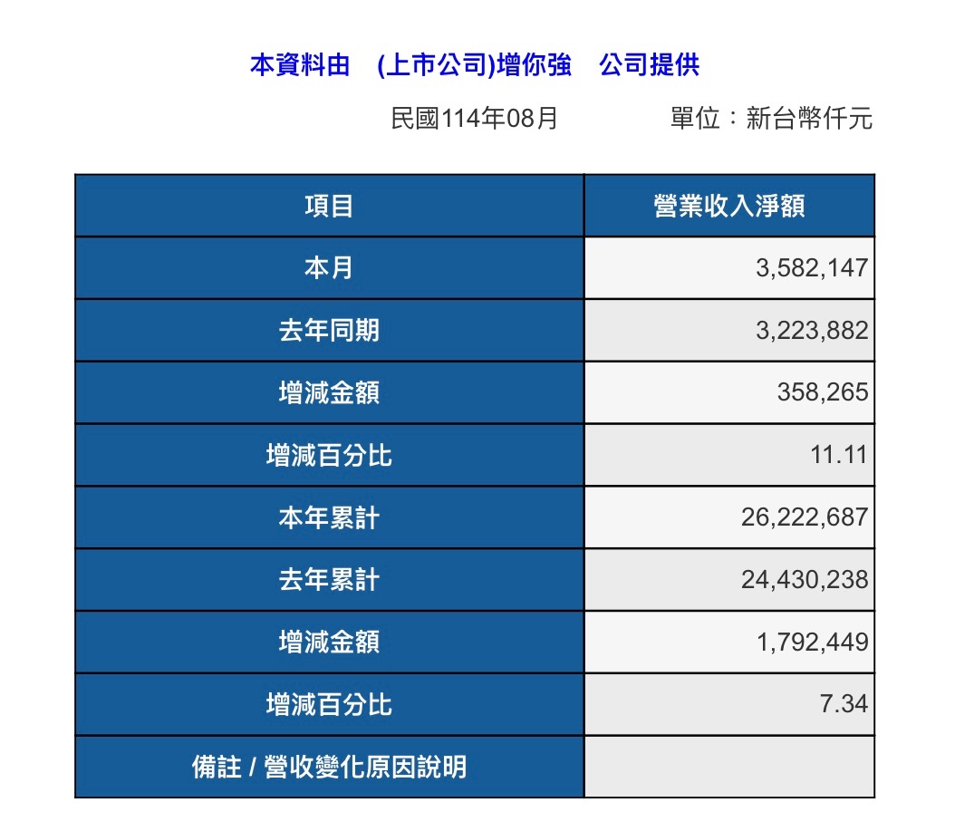 八月營收