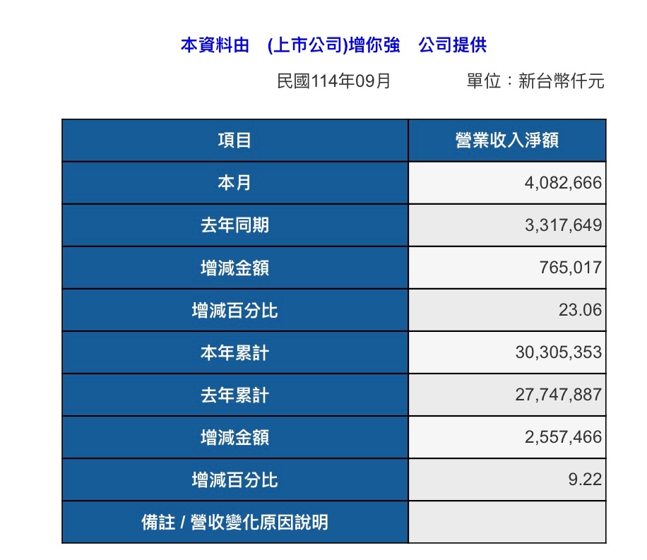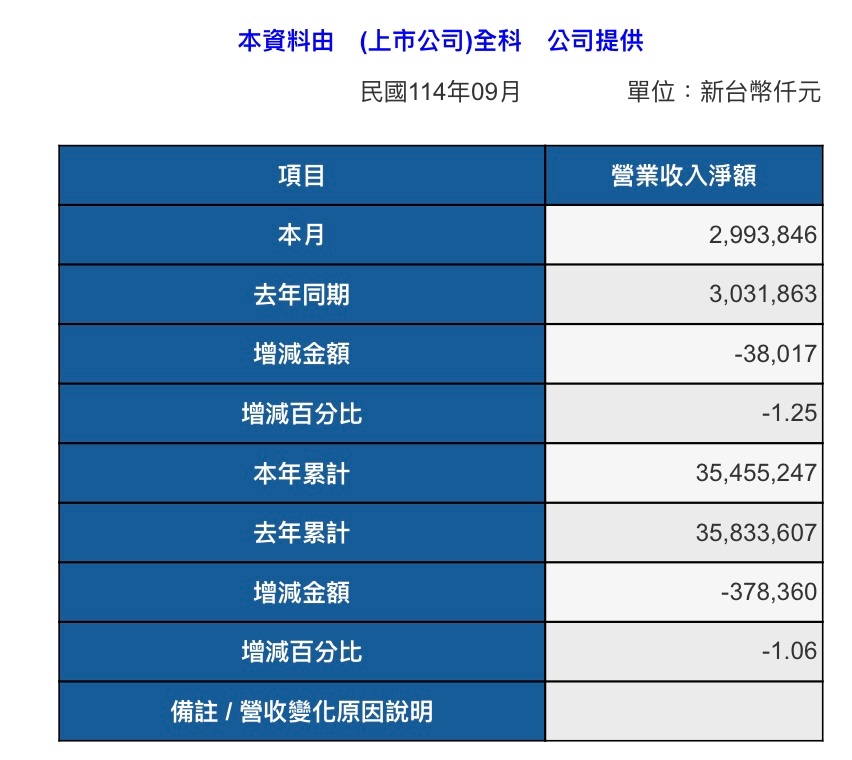九月營收